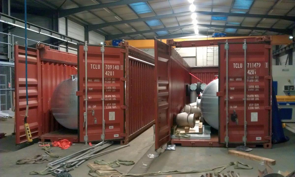 Etudes et préparation pour mise en containers de process complets, colisage pour export