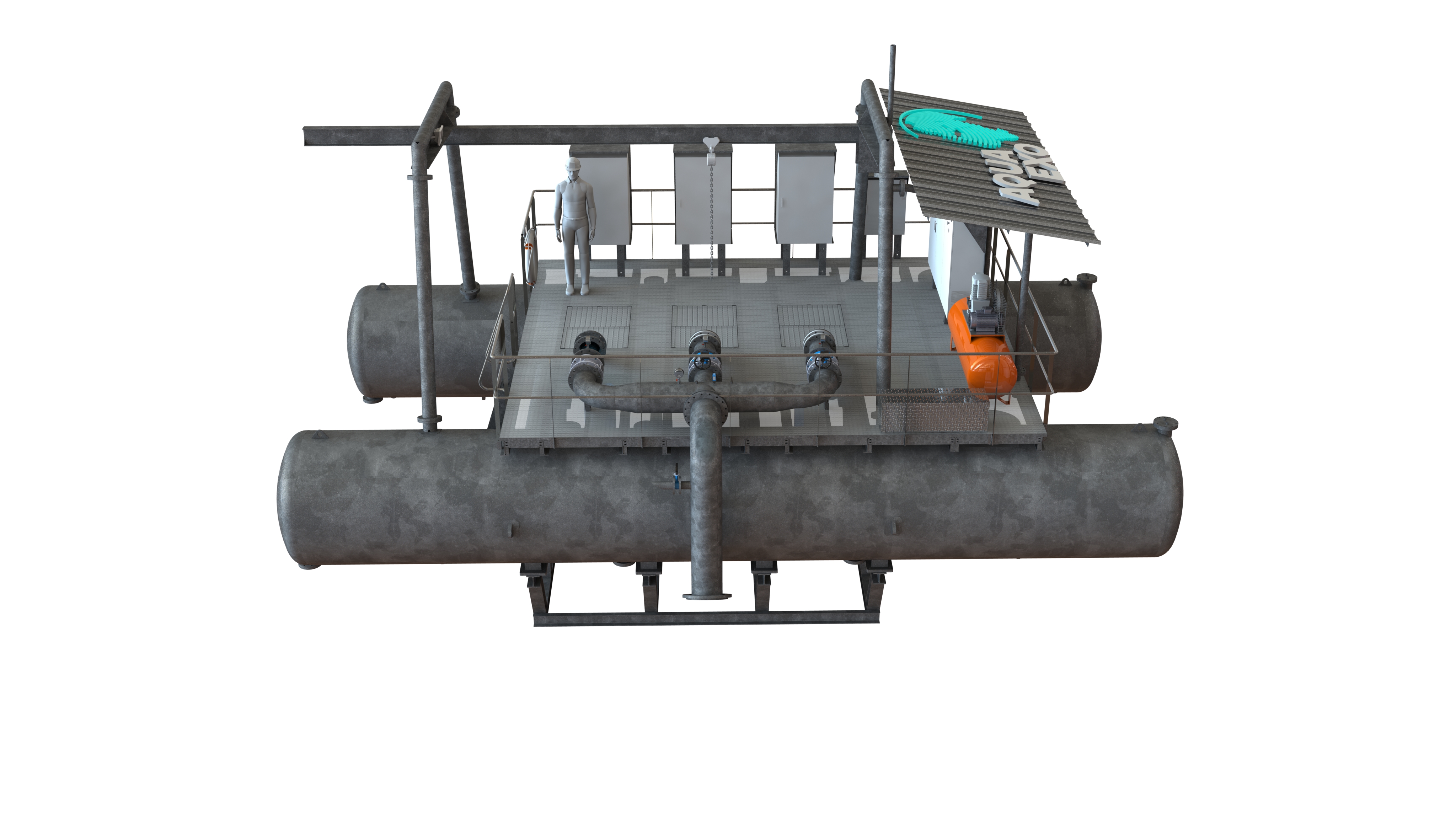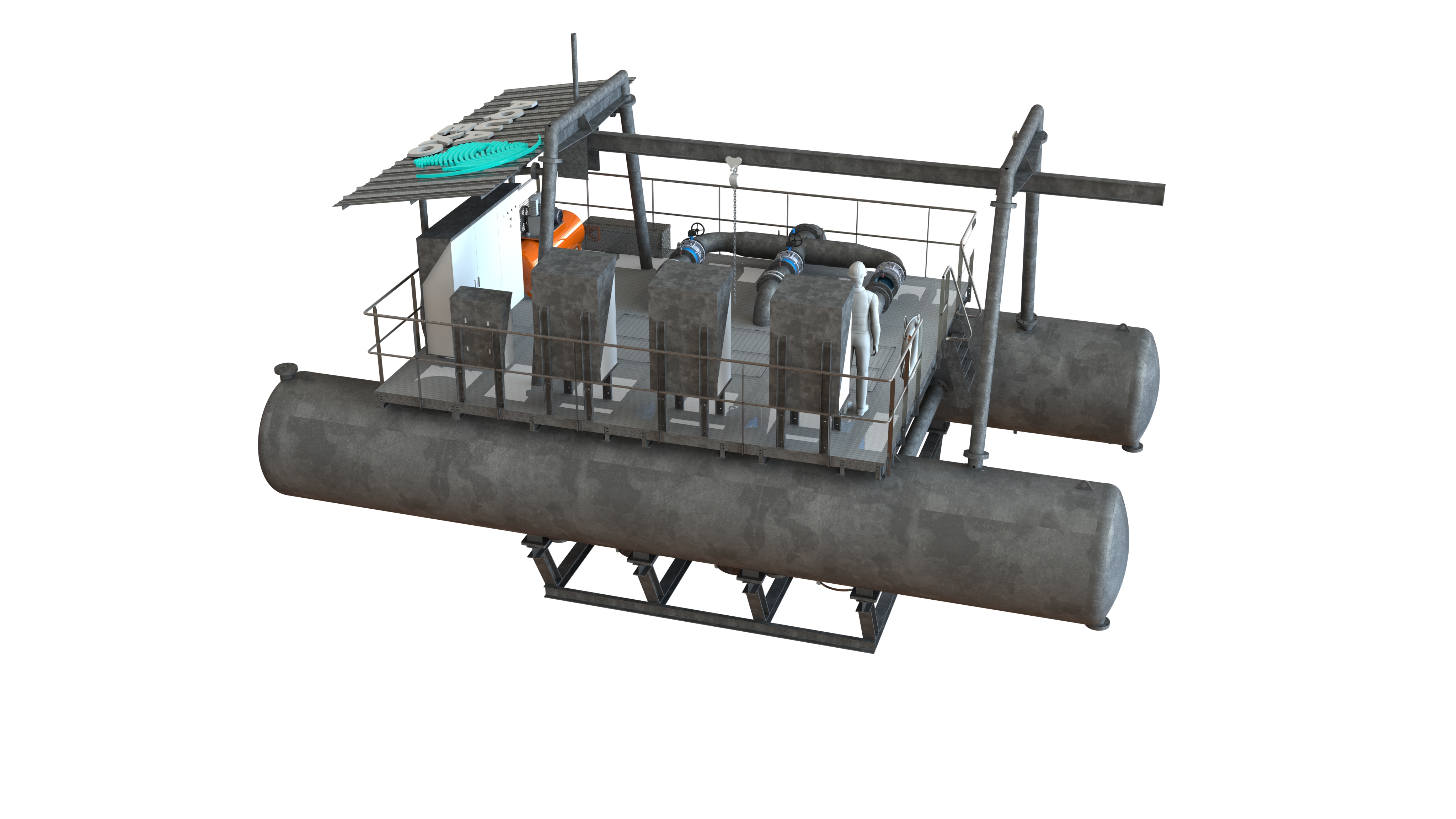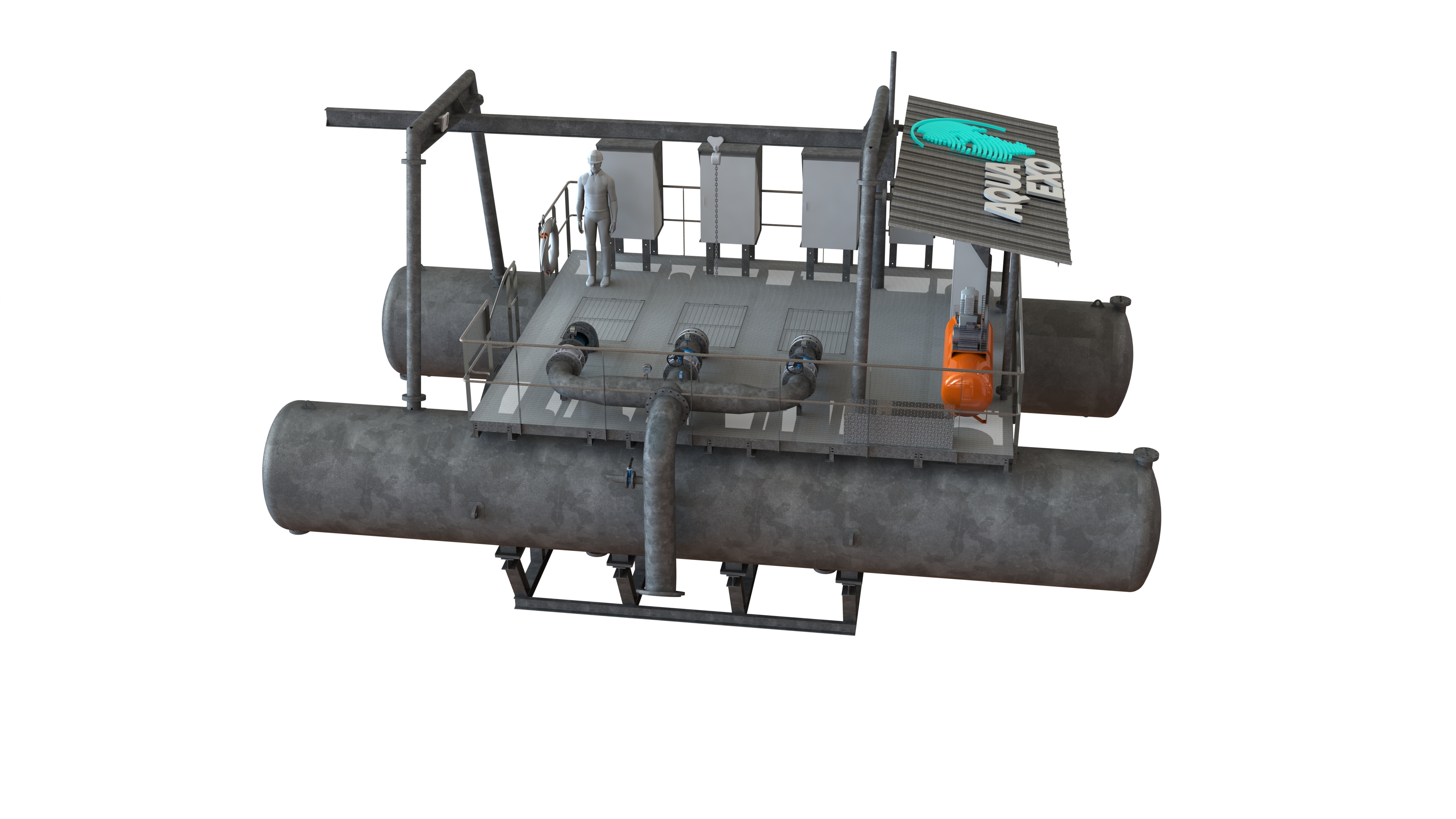 > Cette solution embarque tous les équipements nécessaires à la manutention des groupes de pompage ainsi qu'au décolmatage du système de filtration.