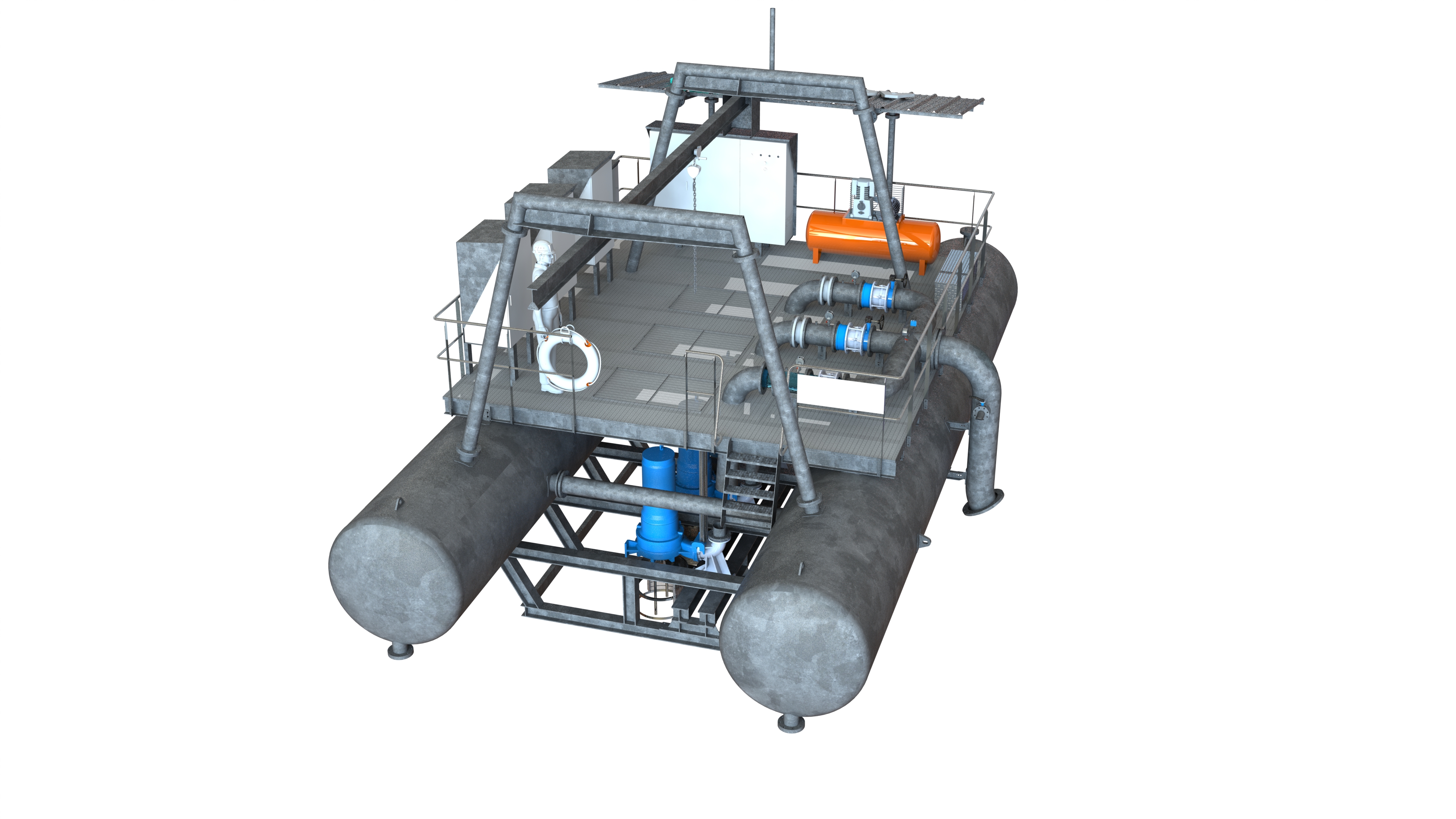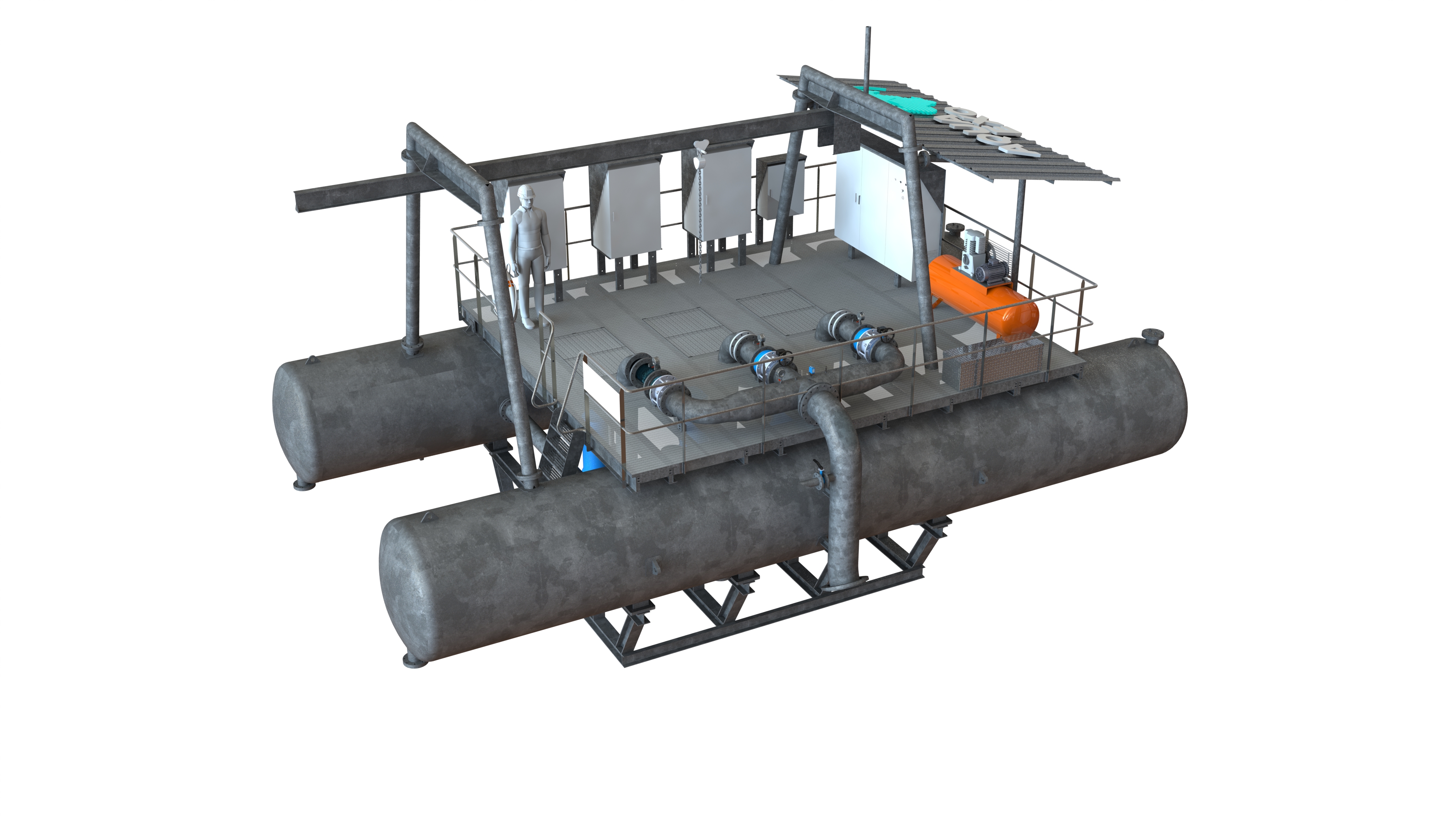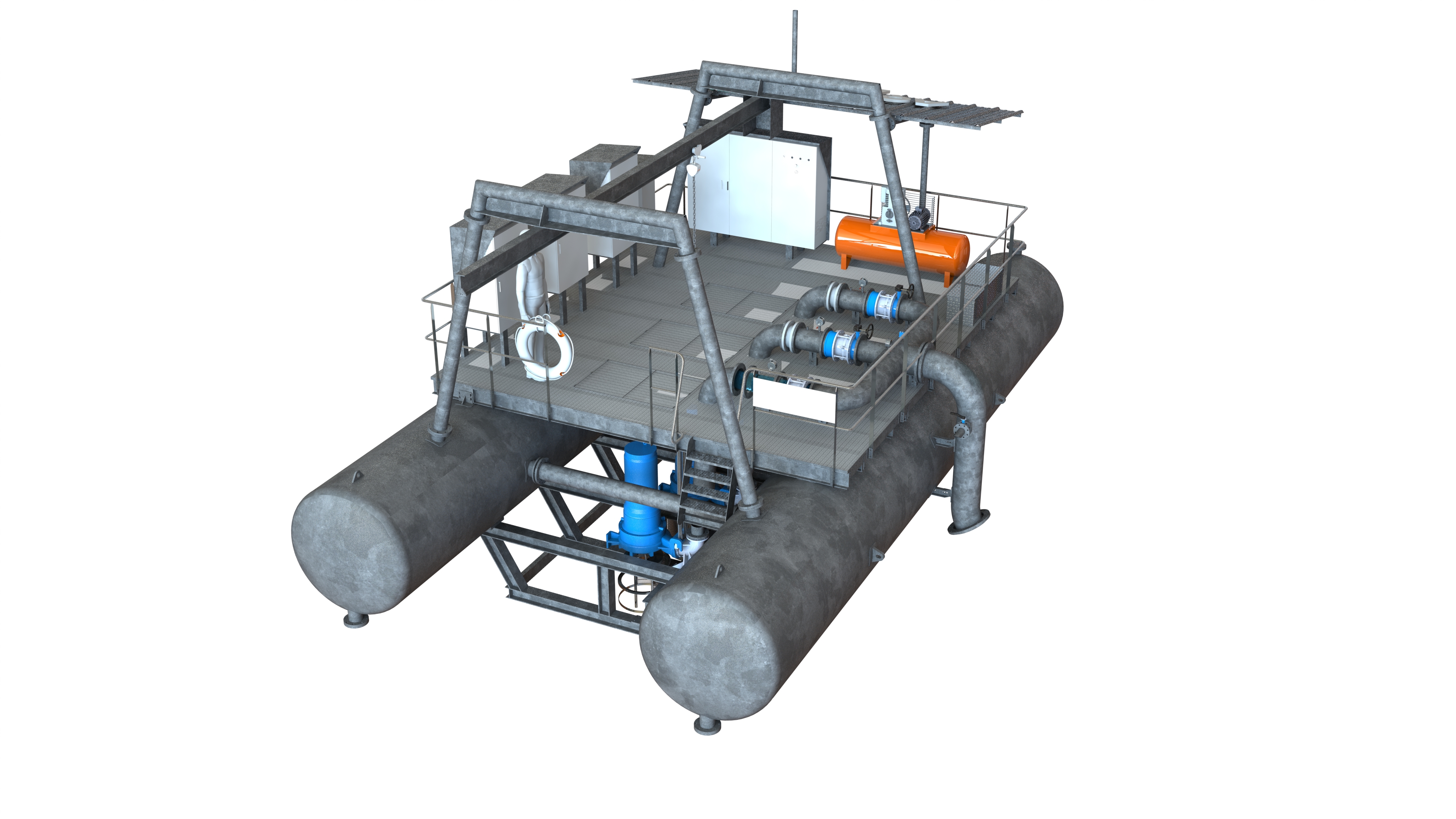 > Les Barges de Pompage sont des unités autonomes conçues pour le captage d'eau de surface dans les retenues de barrage, notamment lorsque le niveau peut subir de fortes variations.