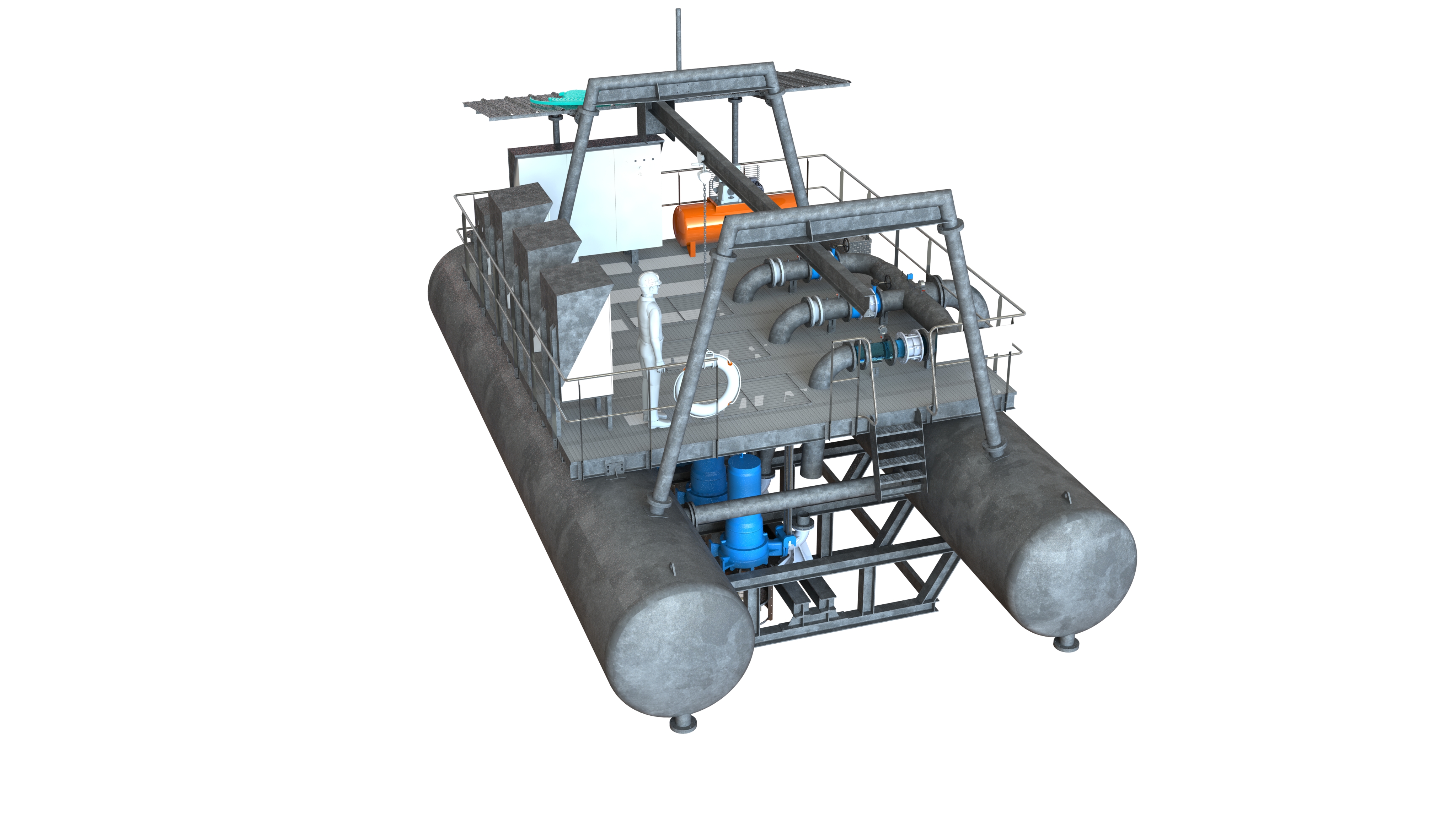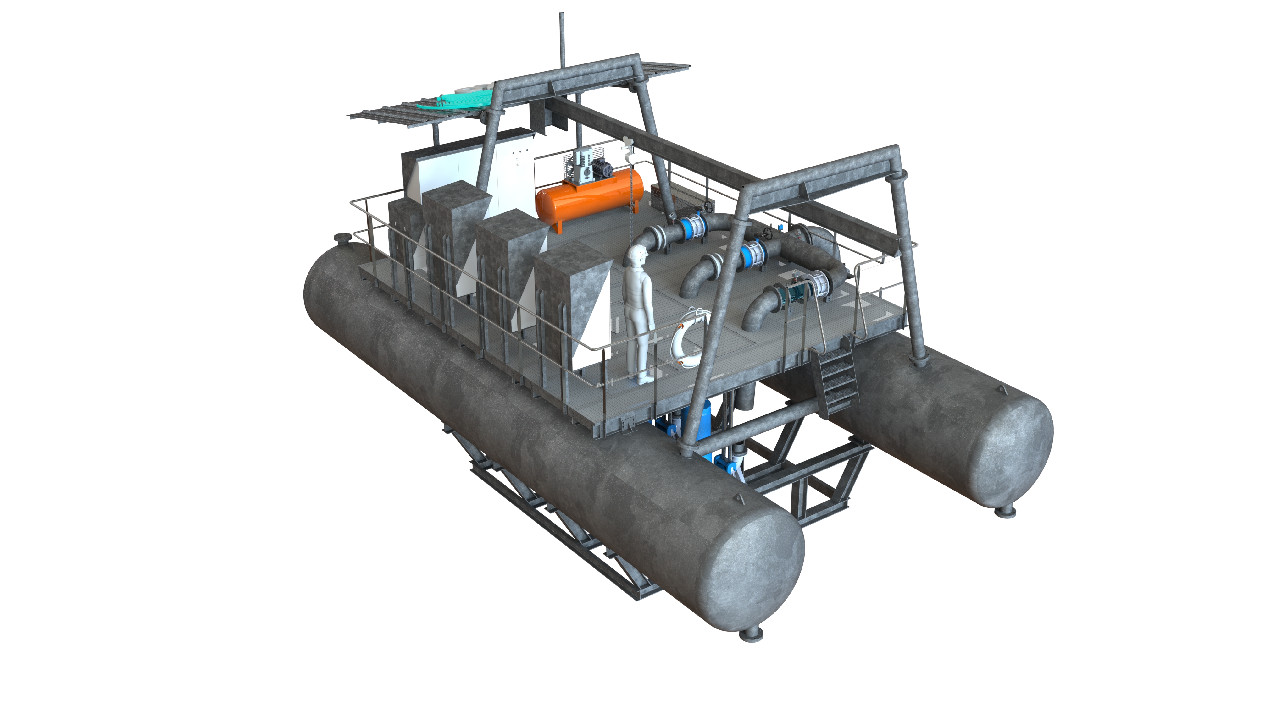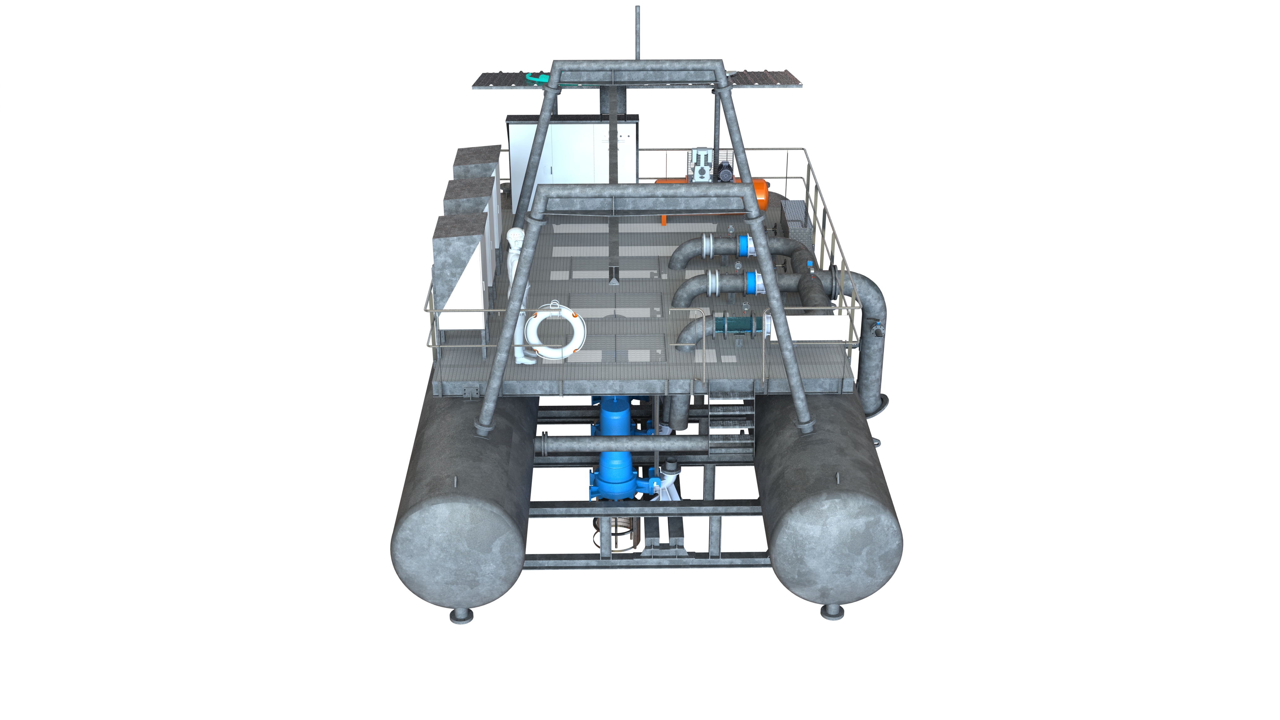 > Les Barges de Pompage sont des unités autonomes conçues pour le captage d'eau de surface dans les retenues de barrage, notamment lorsque le niveau peut subir de fortes variations.