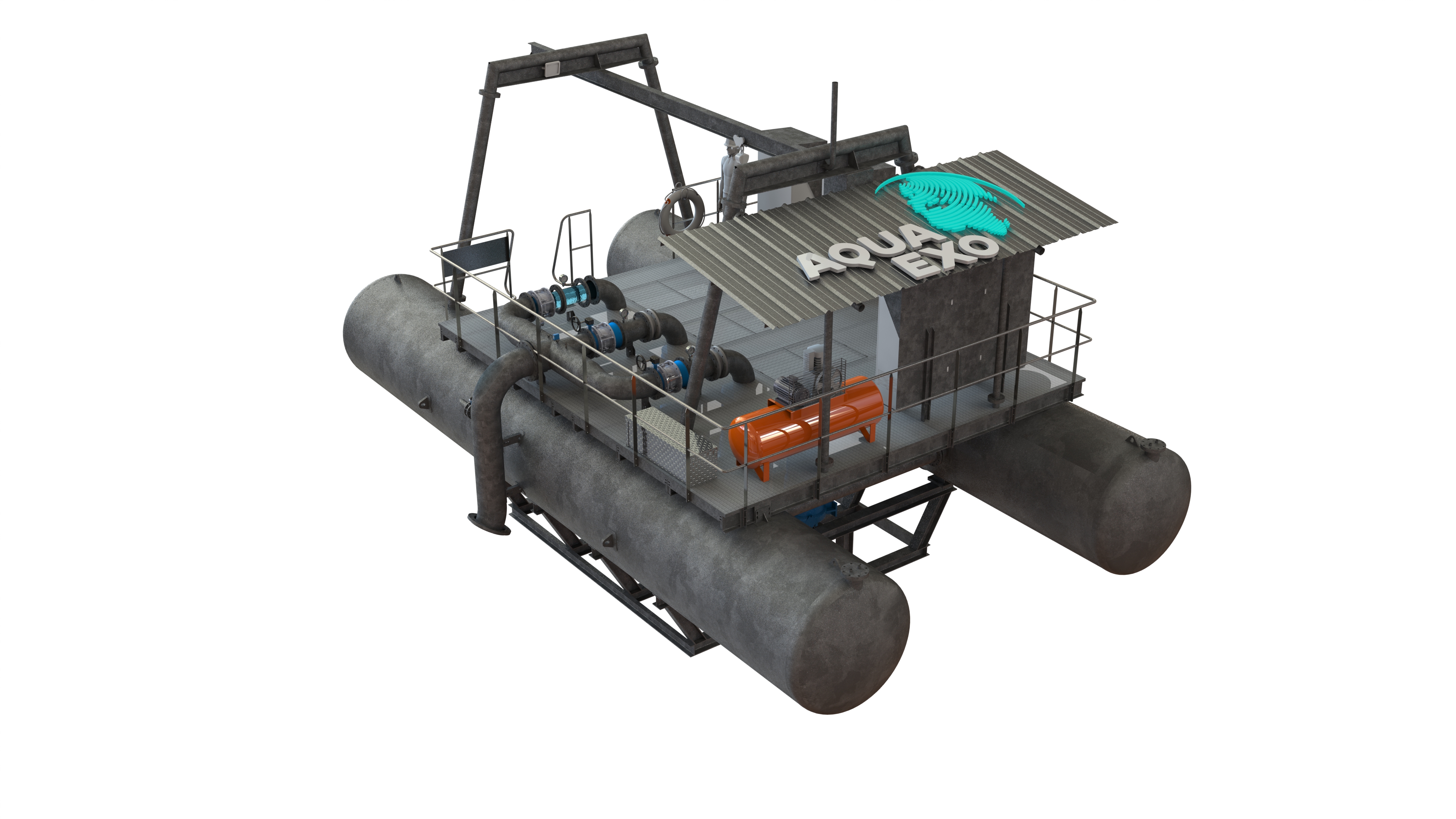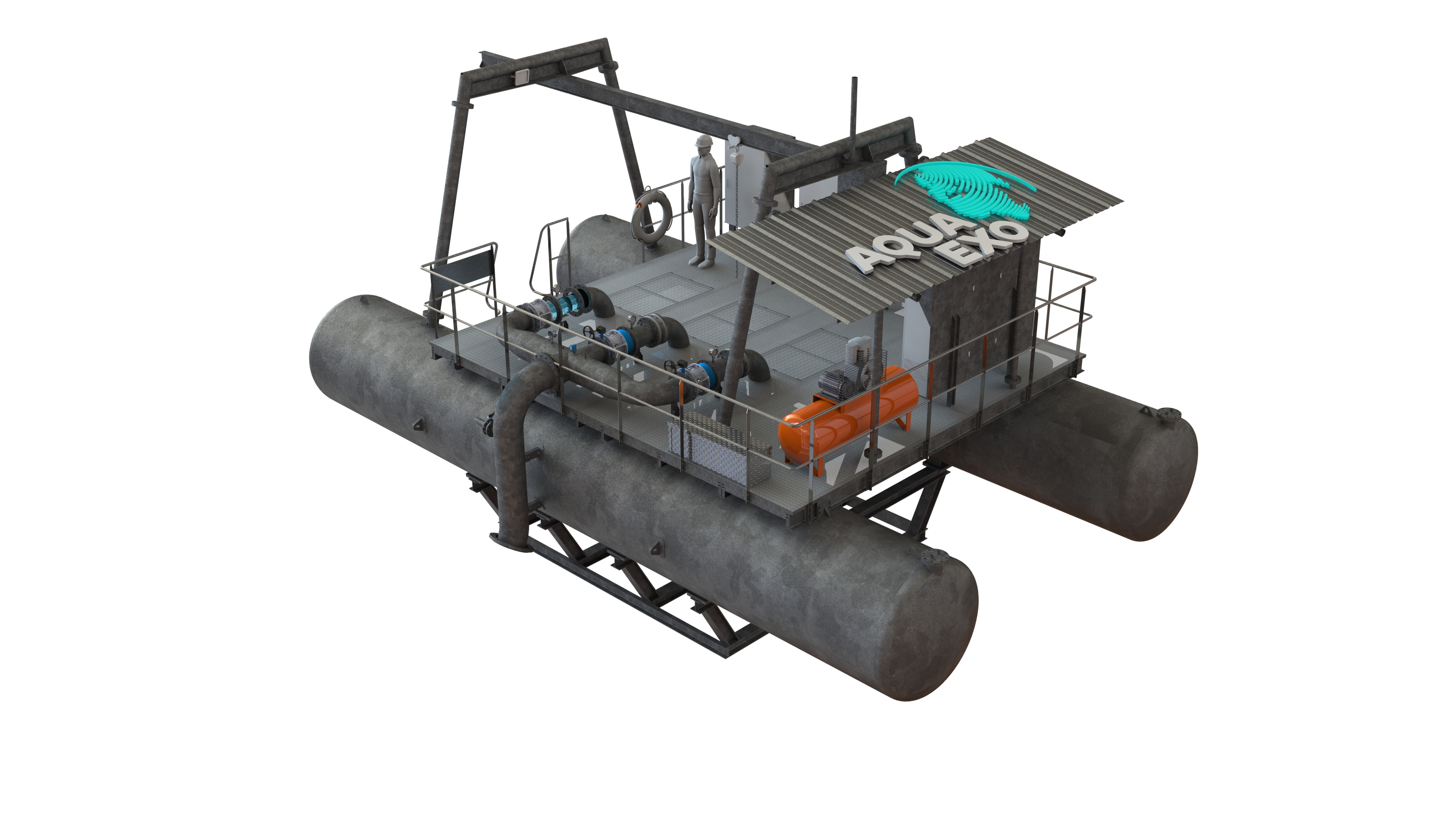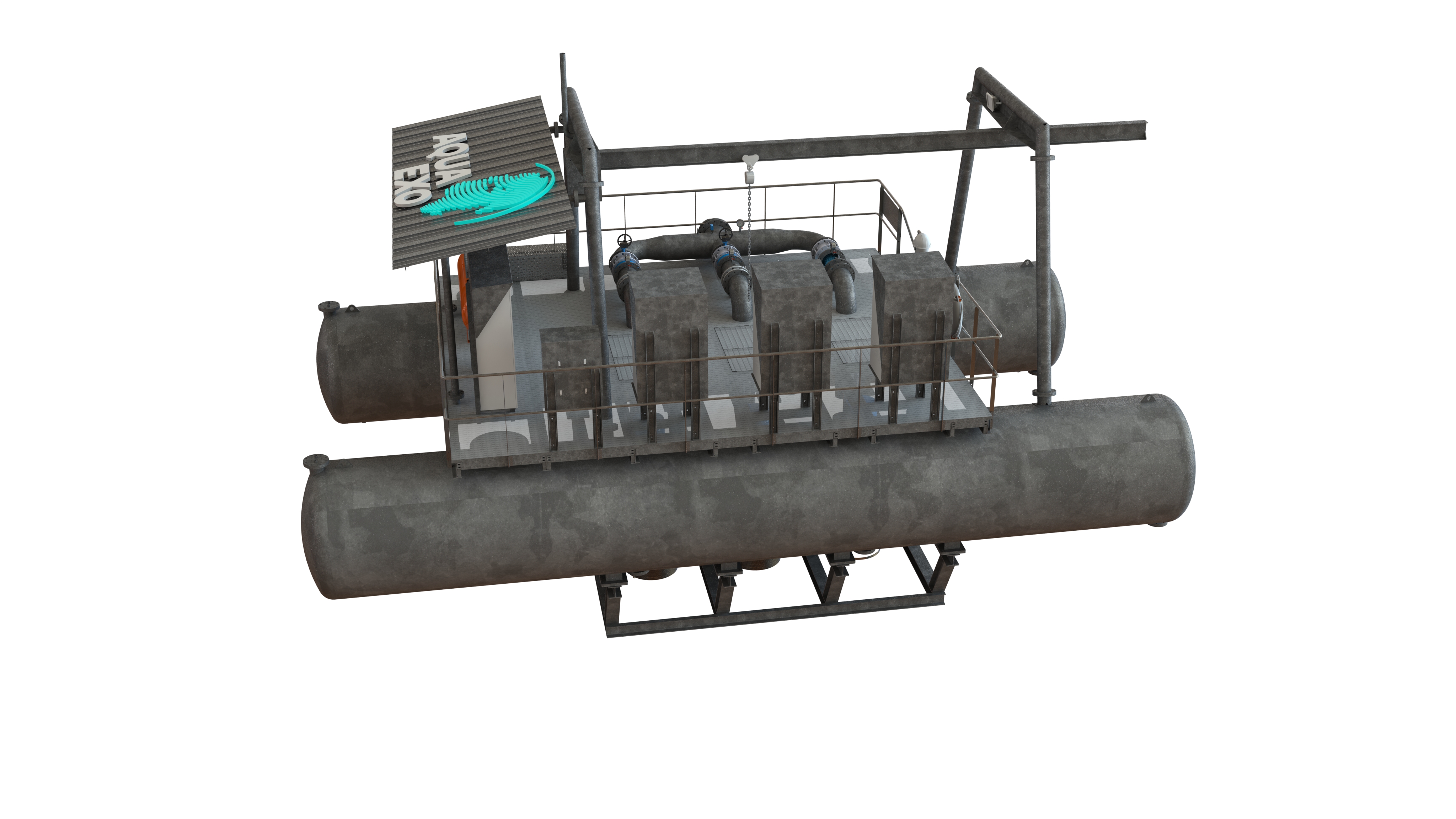 > La structure flottante supporte l'ensemble de la plateforme technique, incluant les conduites, la robinetterie, les équipements hydrauliques et l'armoire électrique.