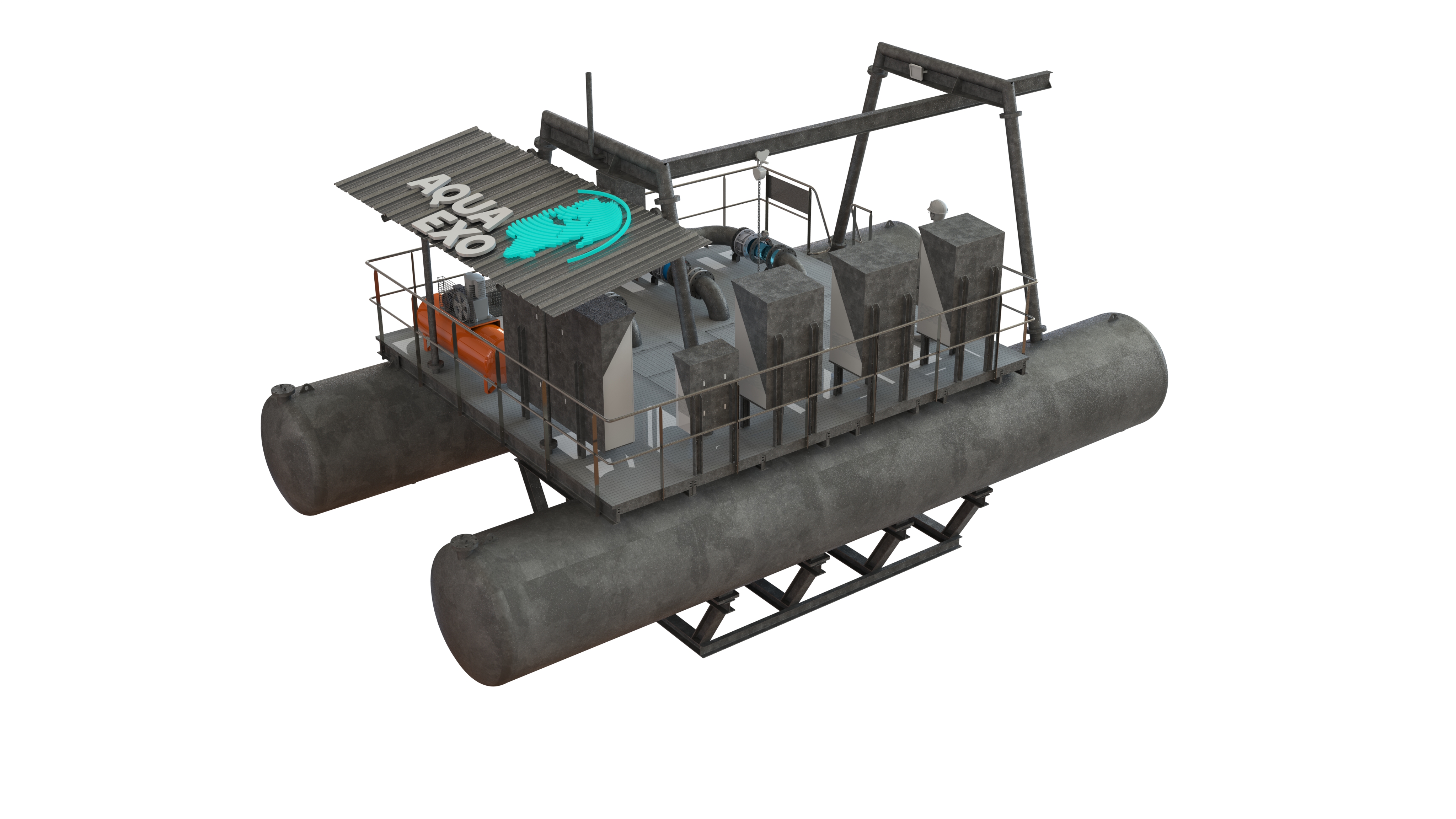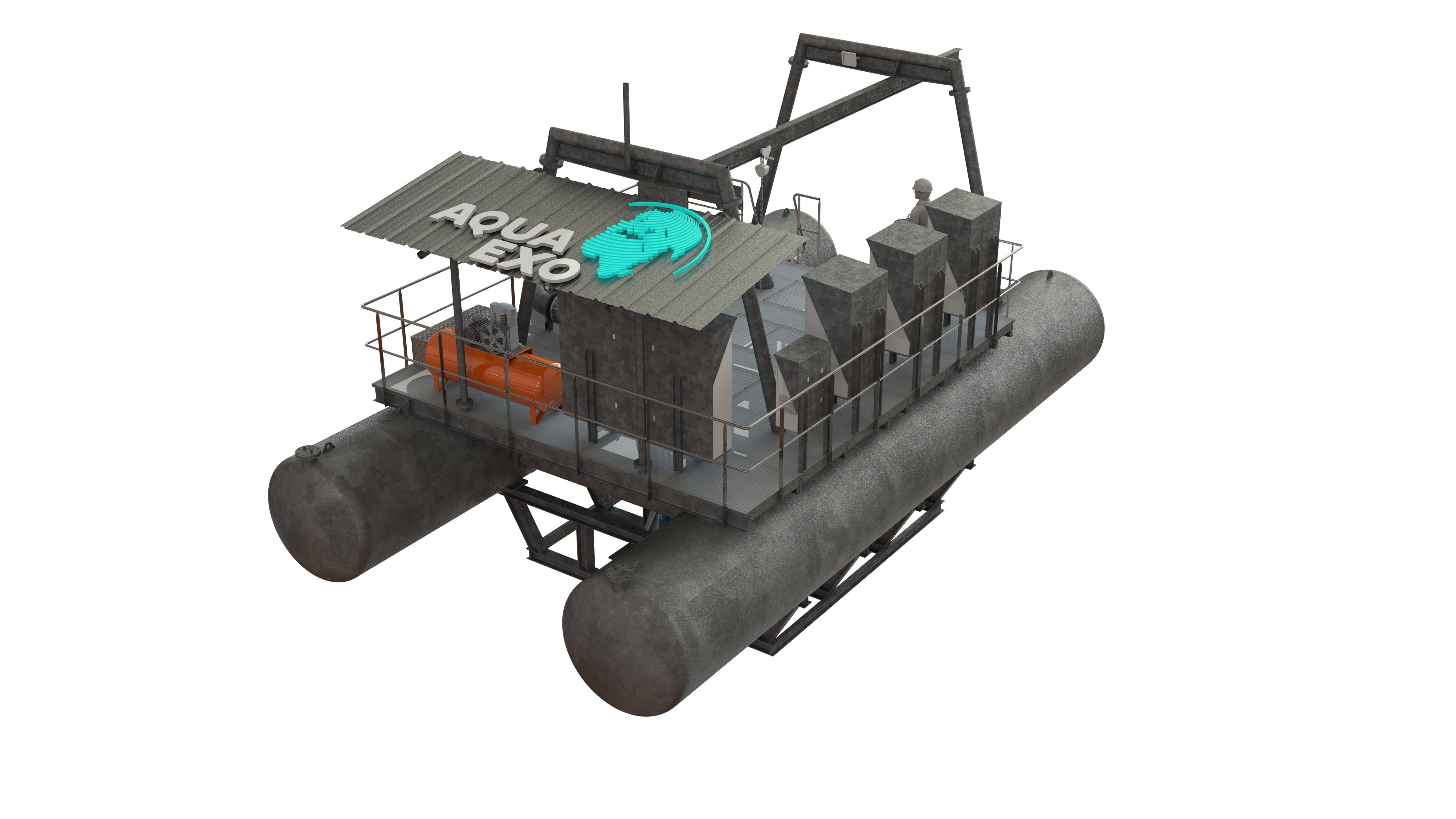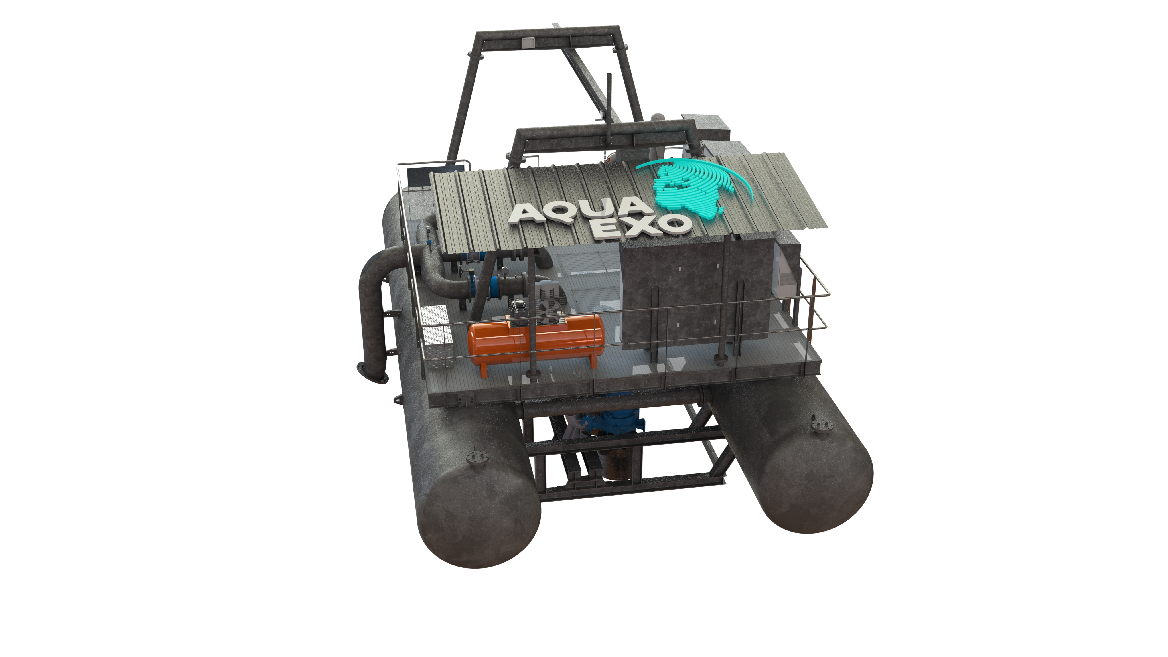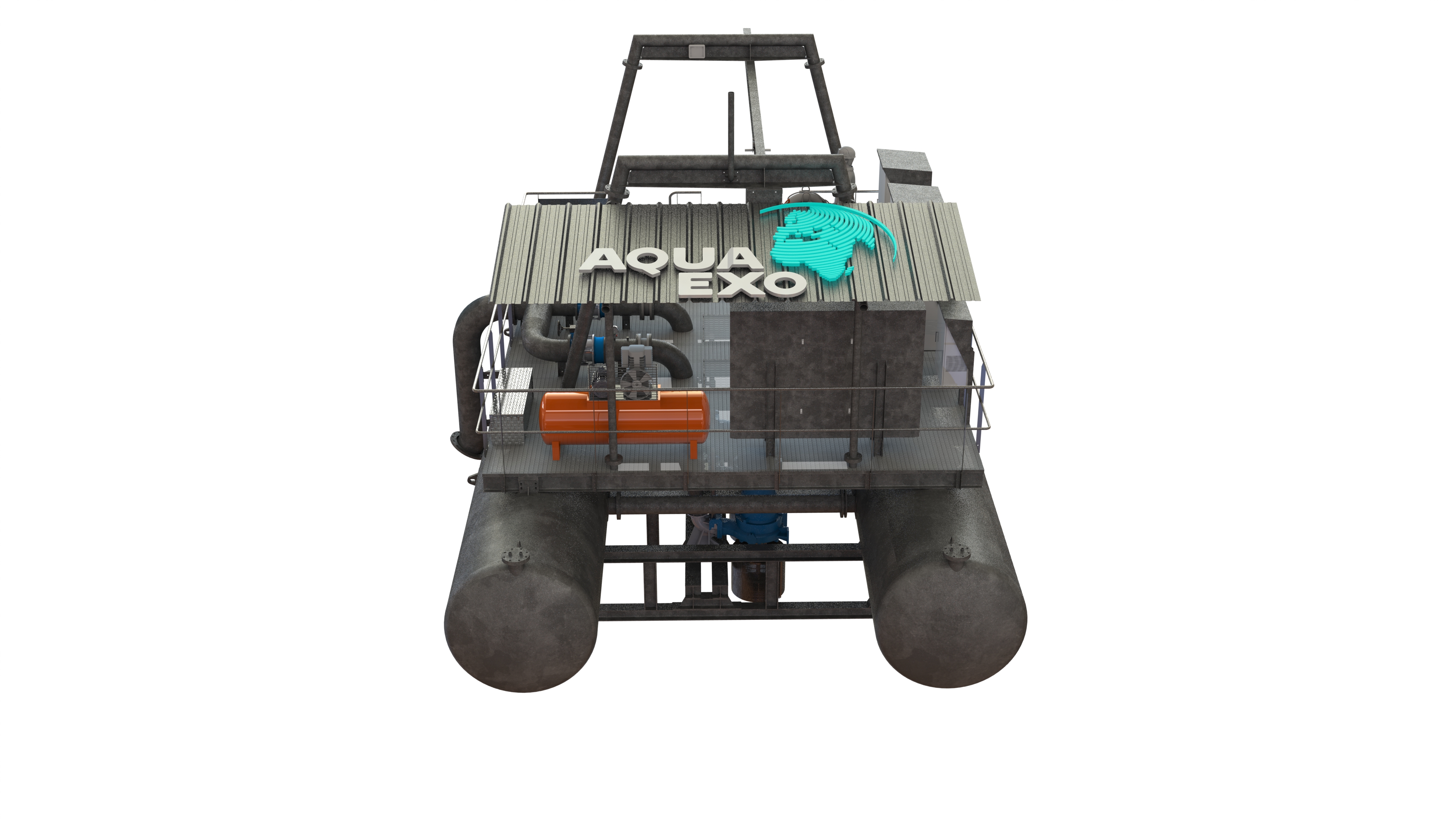 > La structure flottante supporte l'ensemble de la plateforme technique, incluant les conduites, la robinetterie, les équipements hydrauliques et l'armoire électrique.