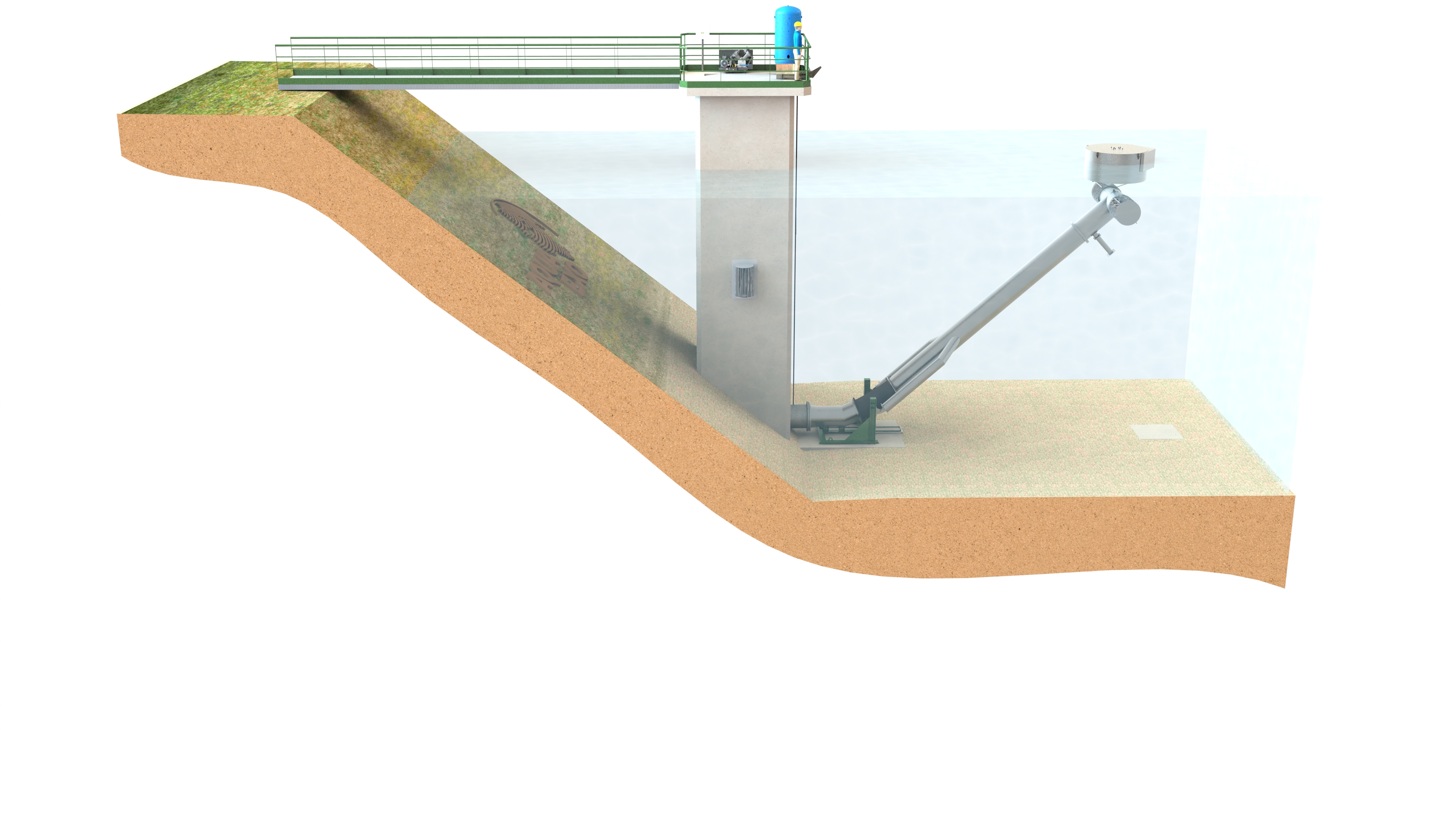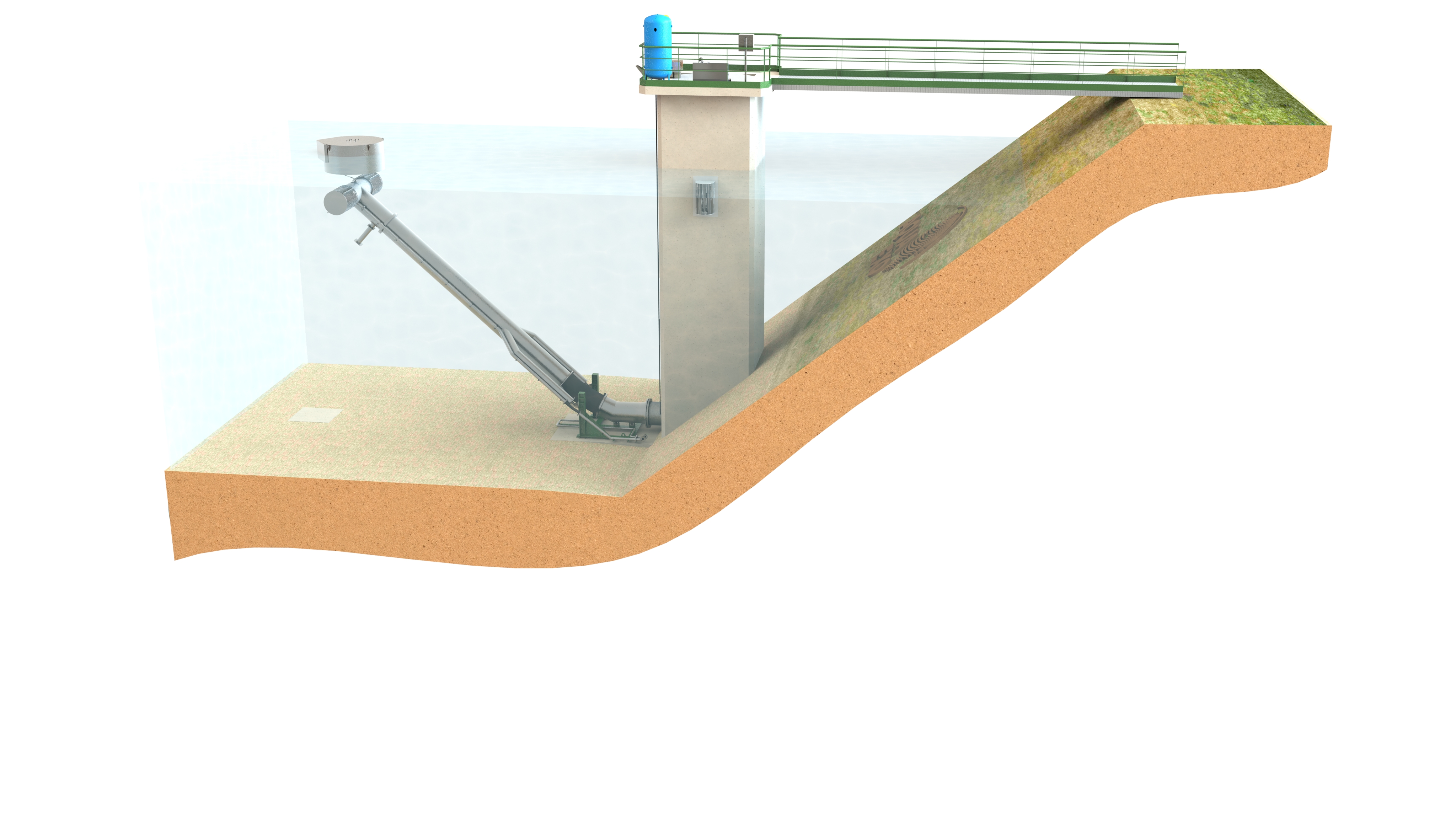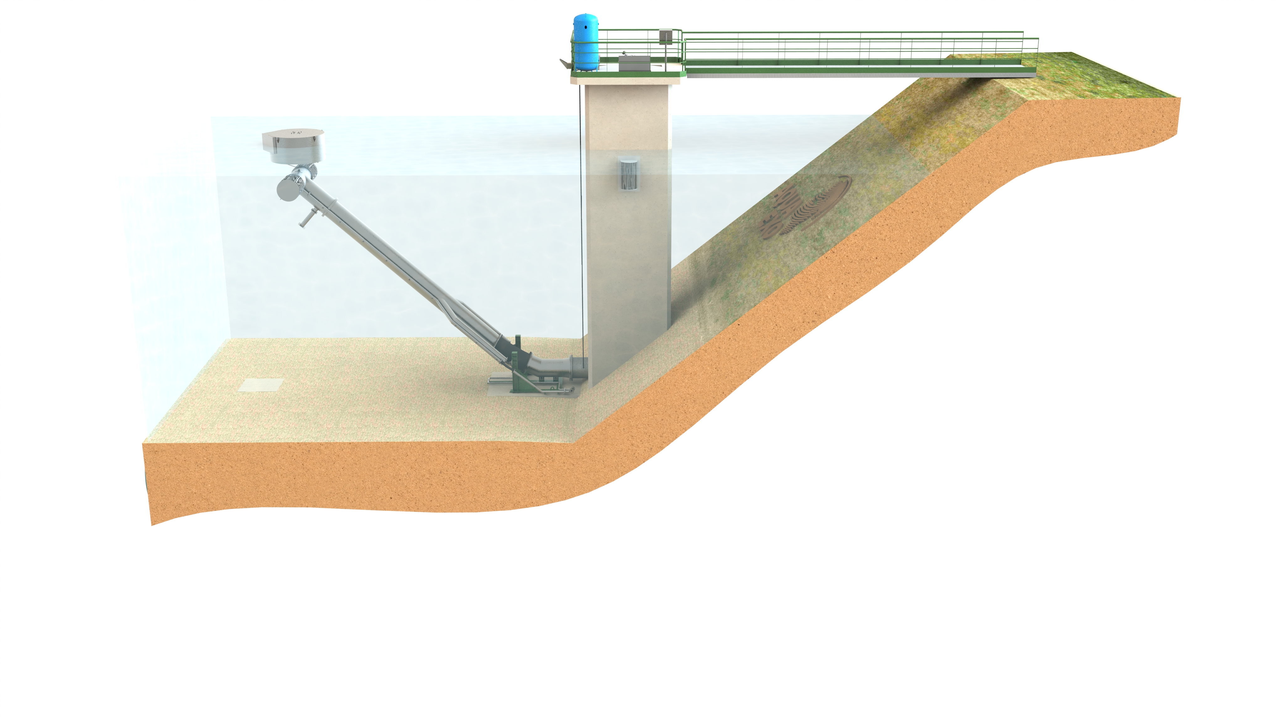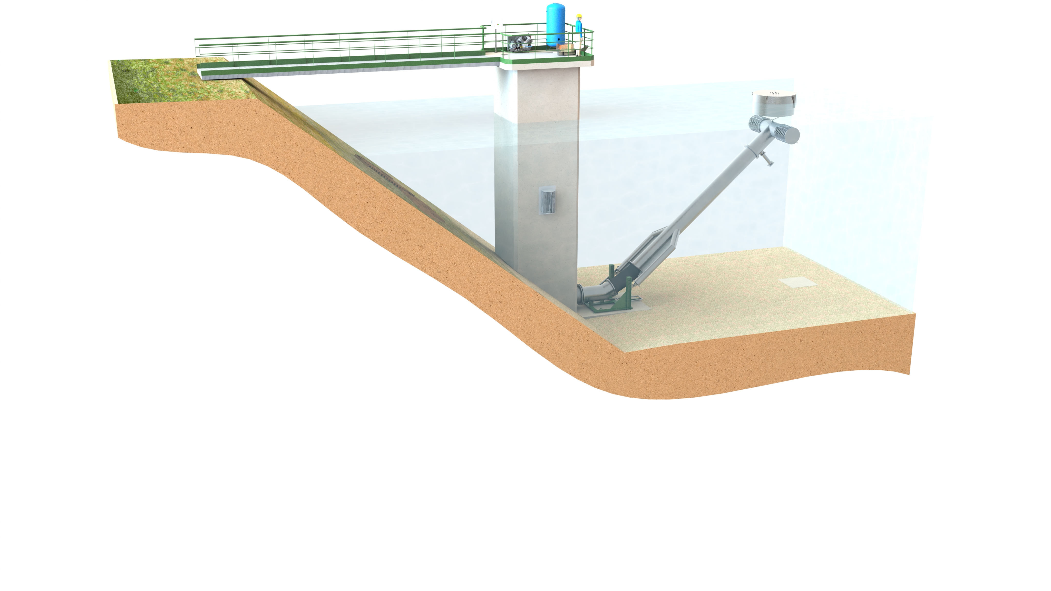 > Les Bras Mobiles Immergés sont des unités conçues pour le captage d'eau dans les retenues de barrages.