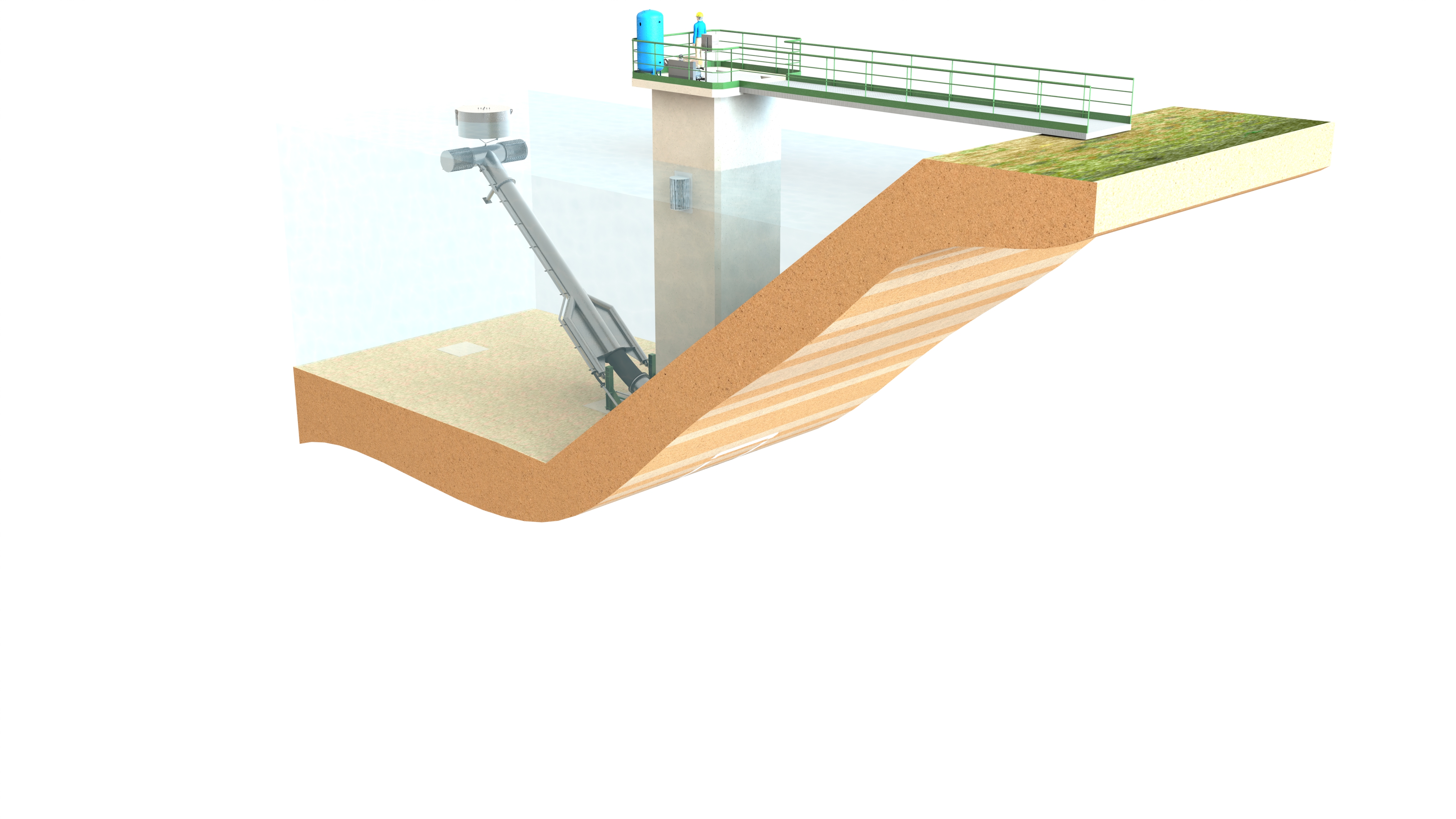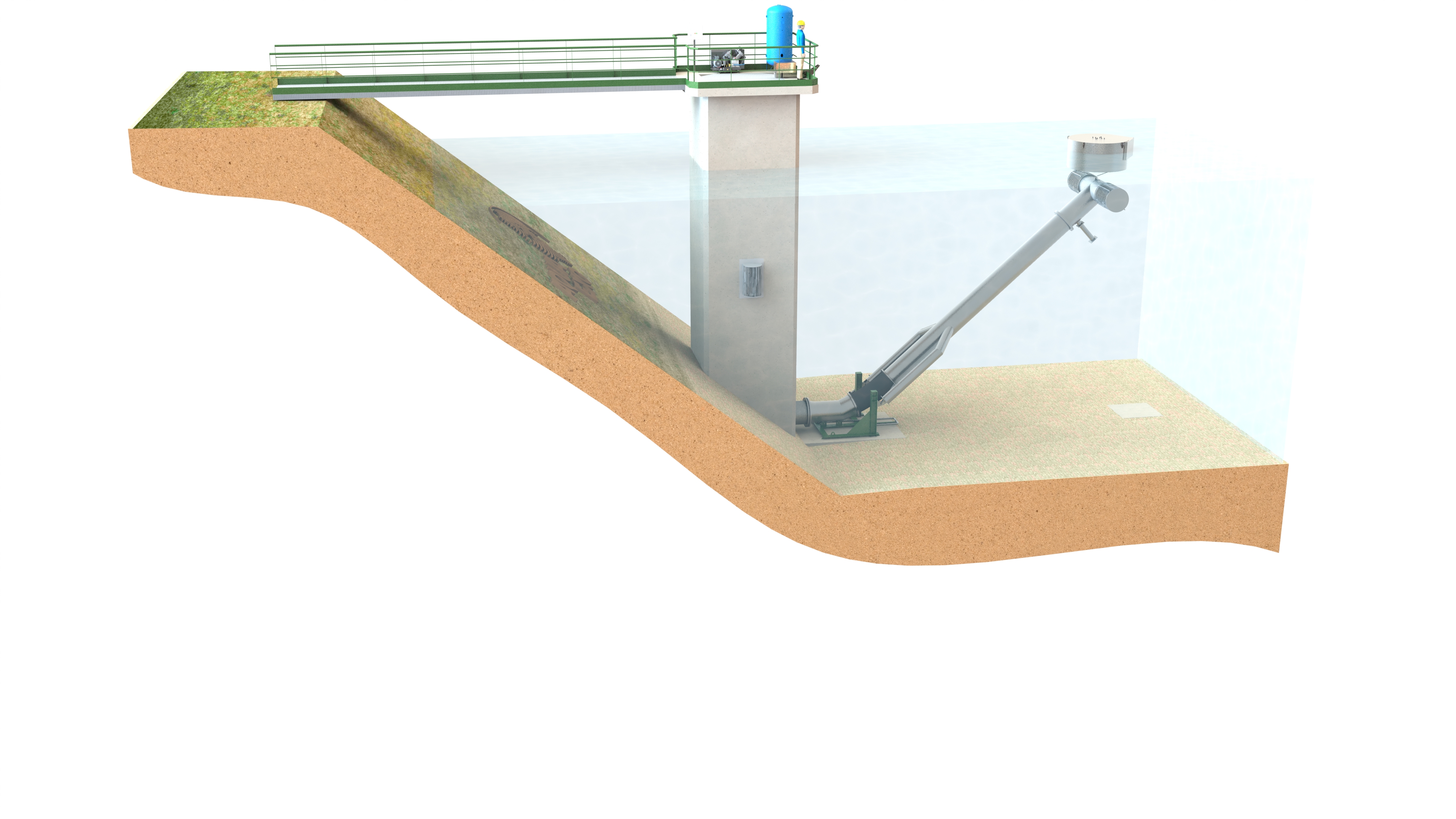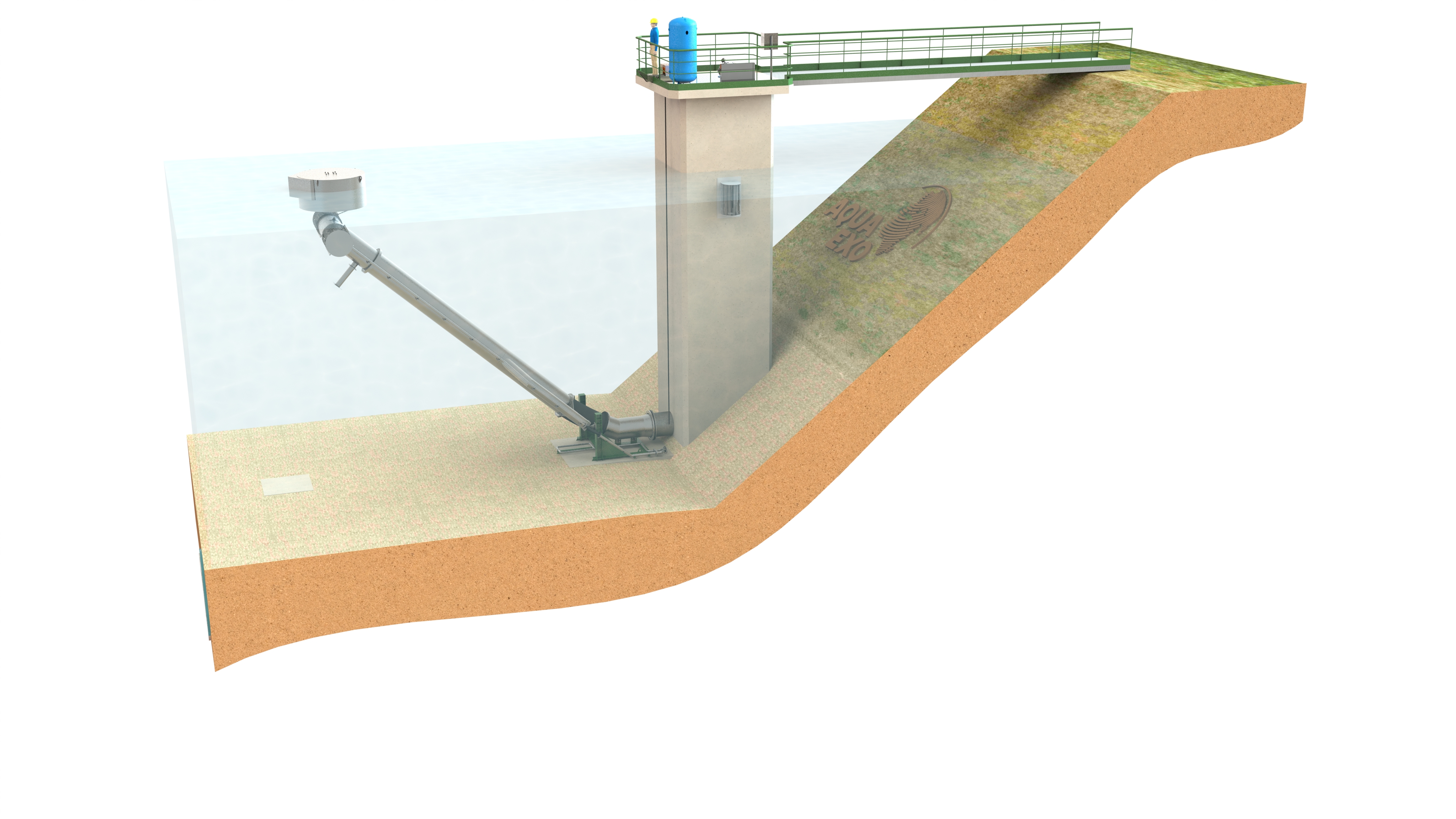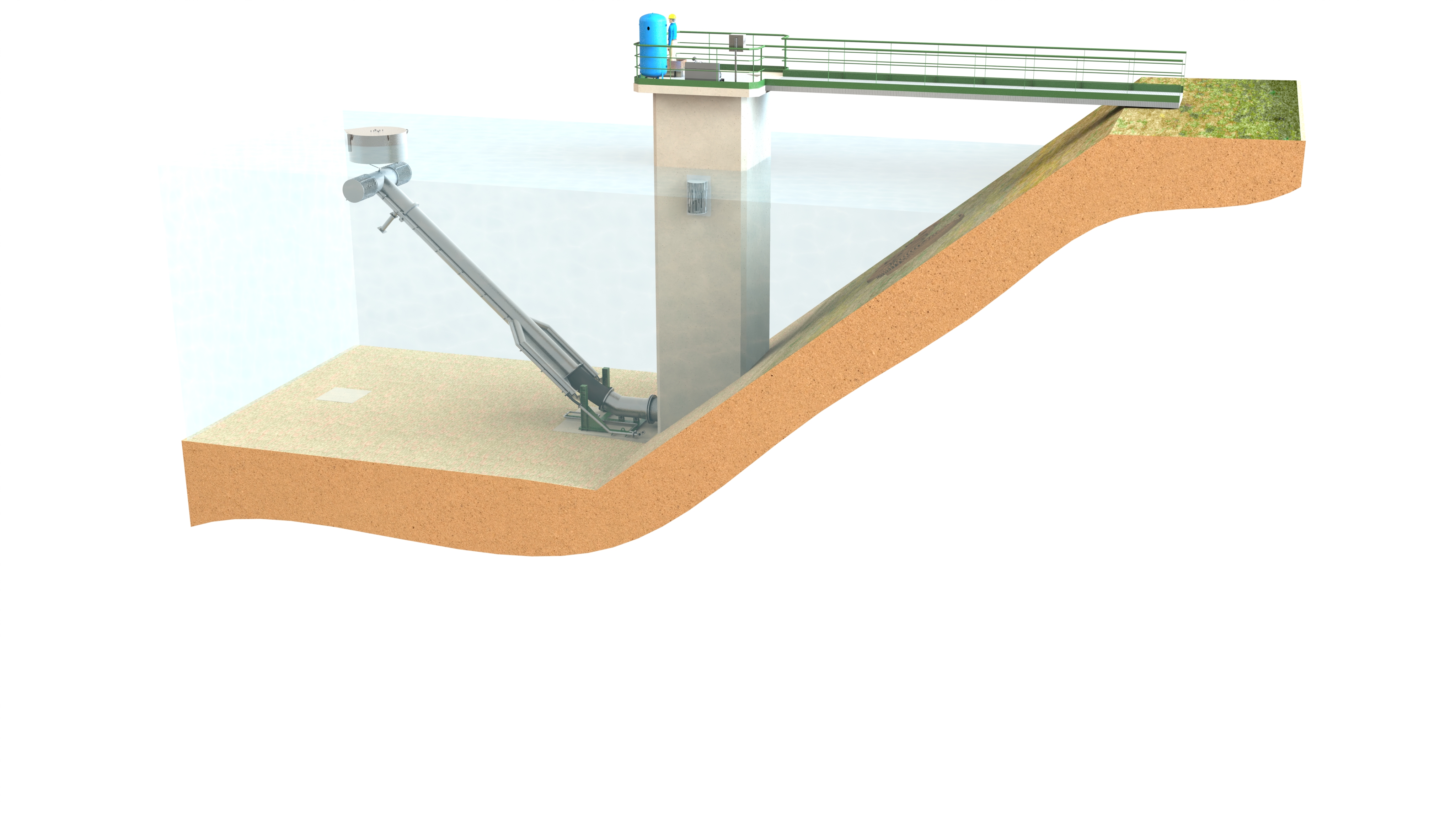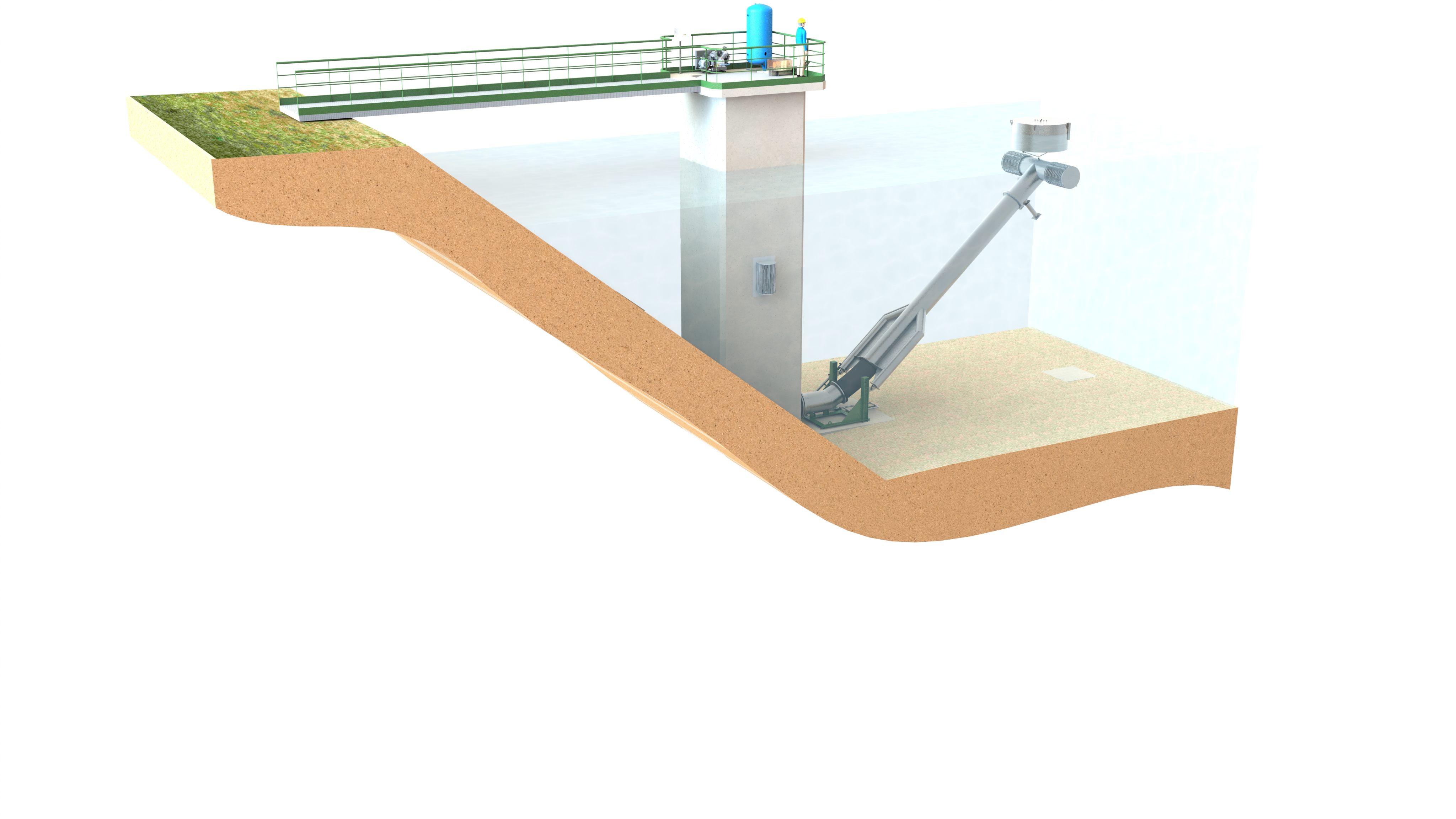 > Les Bras Mobiles Immergés sont des unités conçues pour le captage d'eau dans les retenues de barrages.