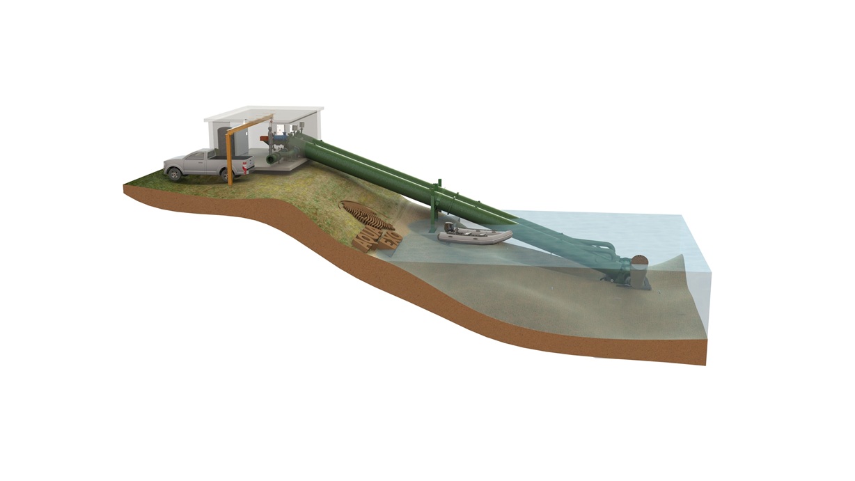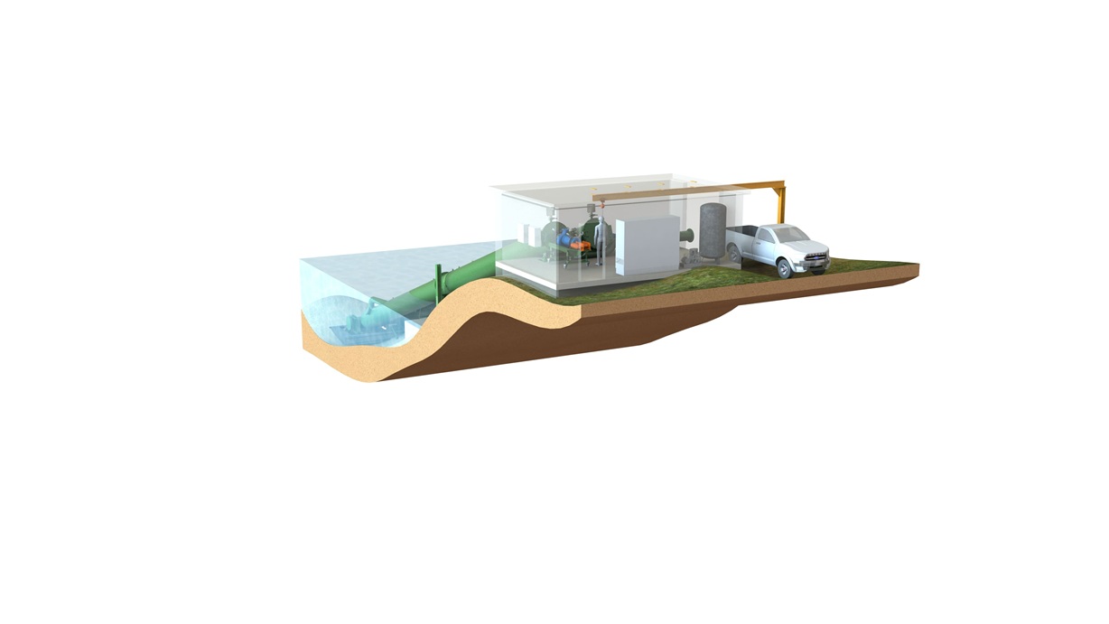 > Les pompes, montées sur chariots, peuvent être facilement extraites depuis la berge, ce qui simplifie grandement les opérations de maintenance.
