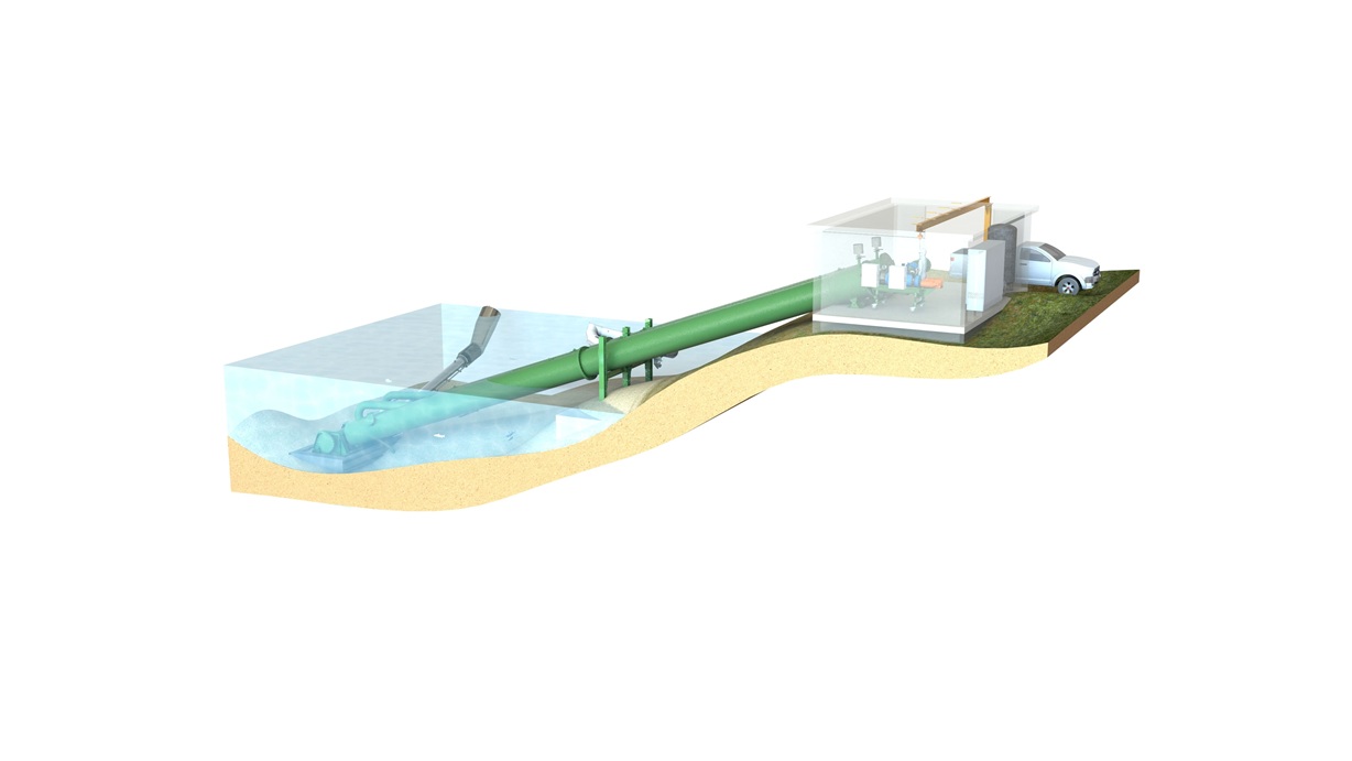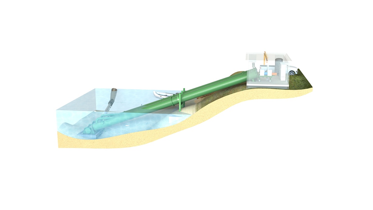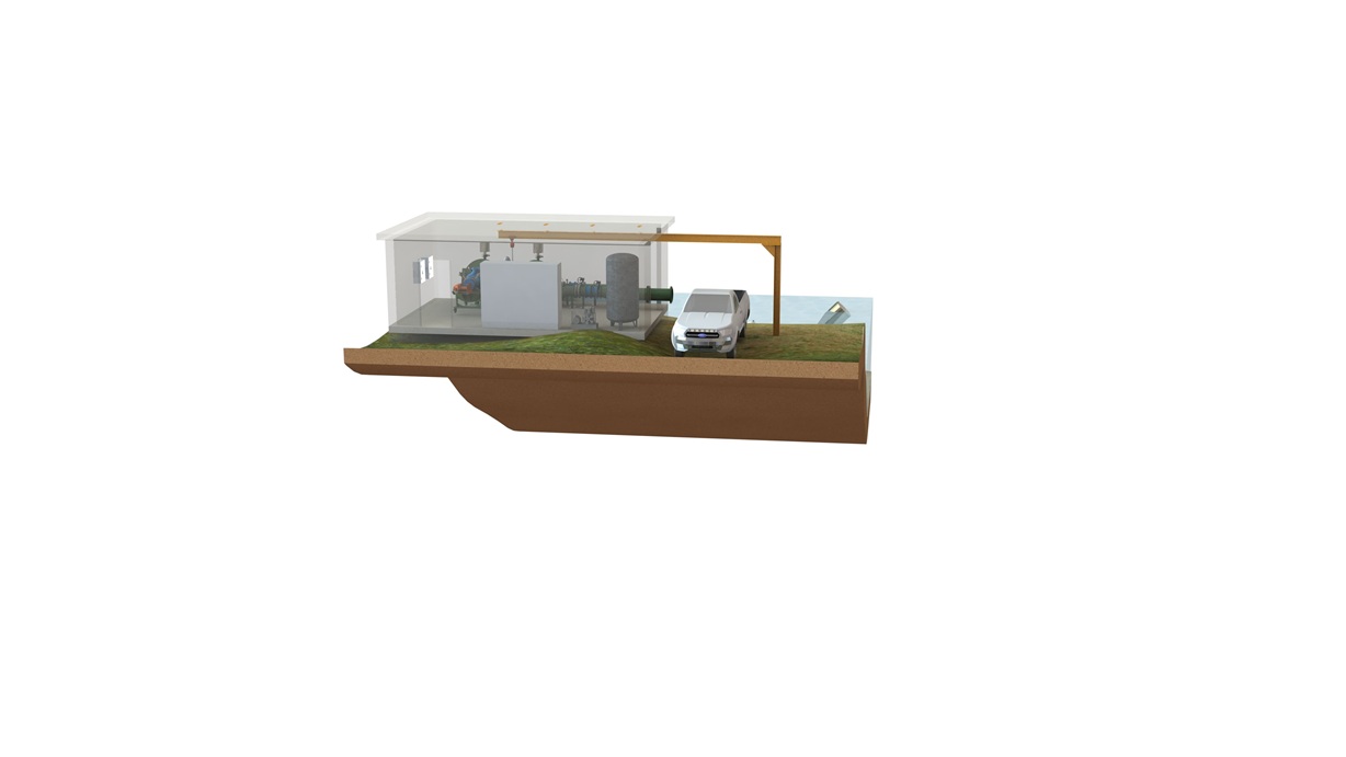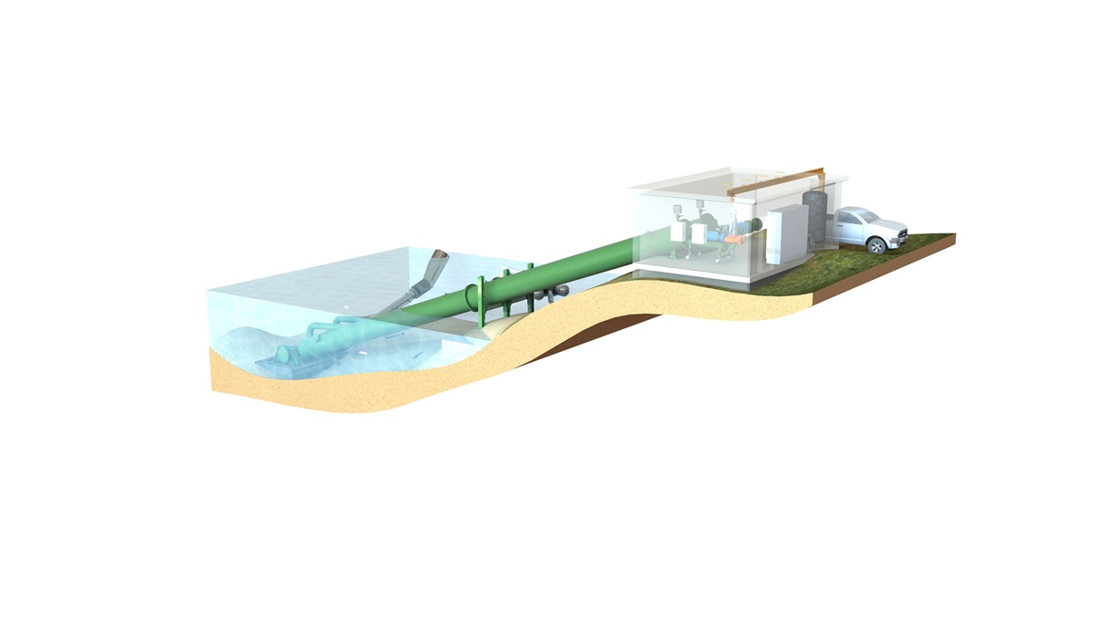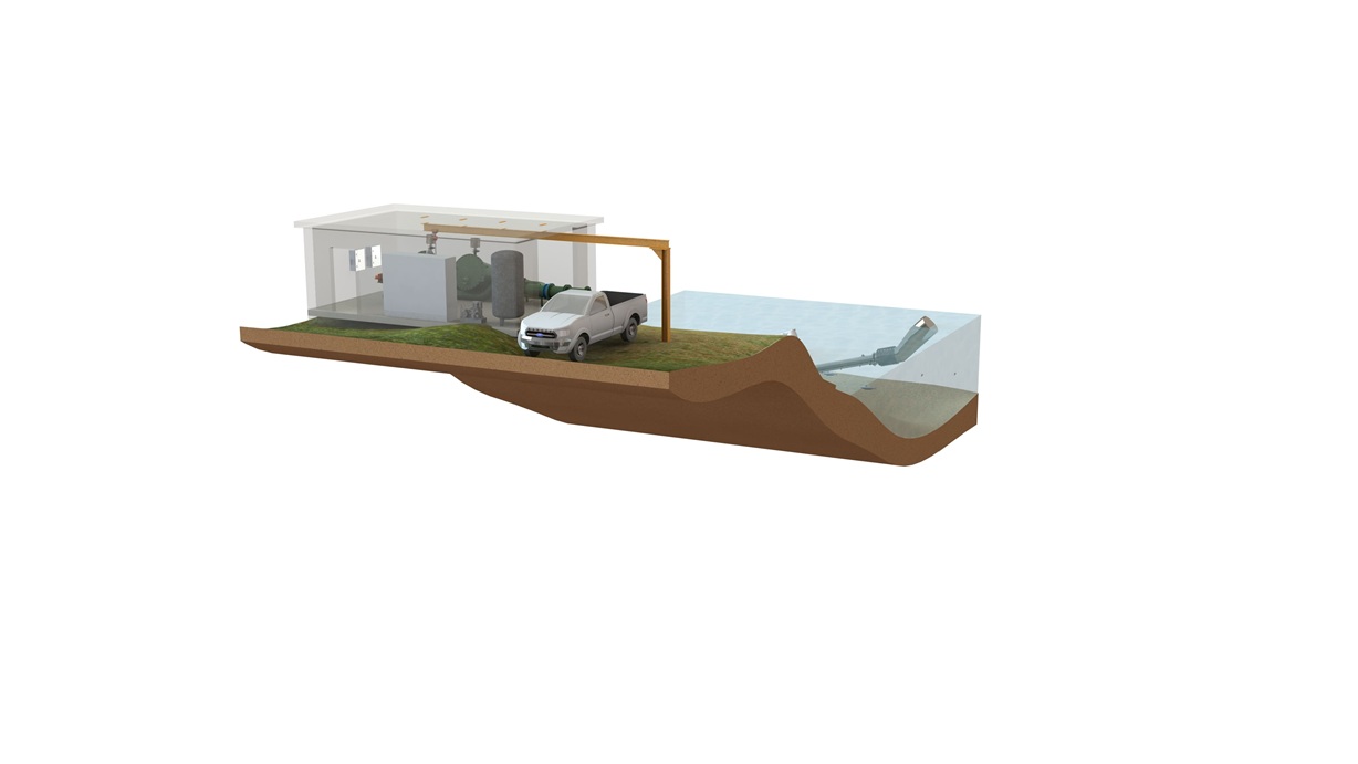 > Cette solution, constituée de structures tubulaires, permet d'installer les groupes électropompes en dessous du niveau des plus basses eaux.