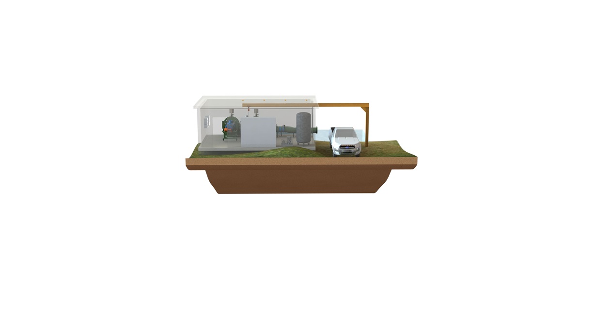 > Les équipements hydrauliques auxiliaires ainsi que l'armoire électrique sont regroupés dans le local technique.