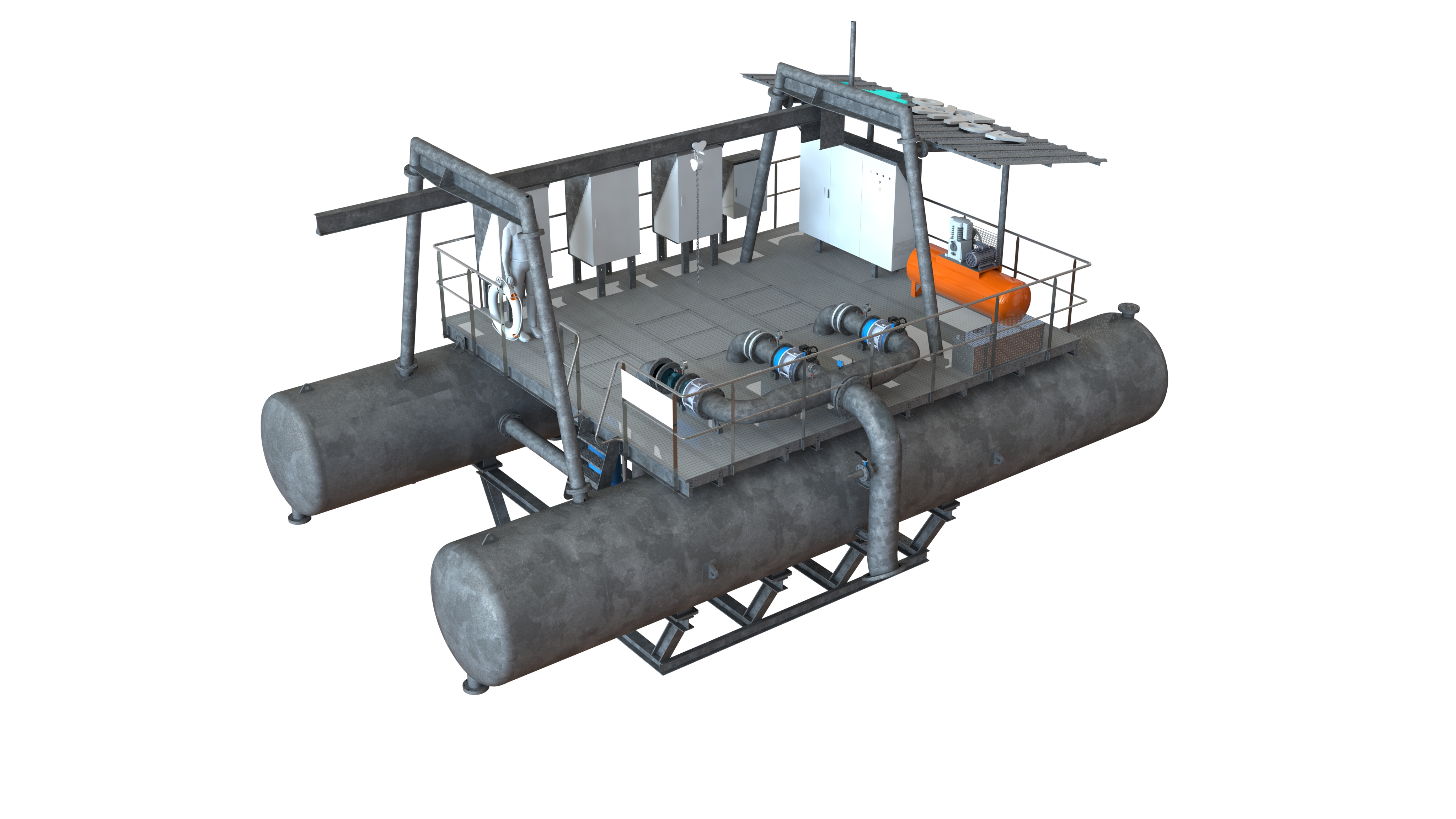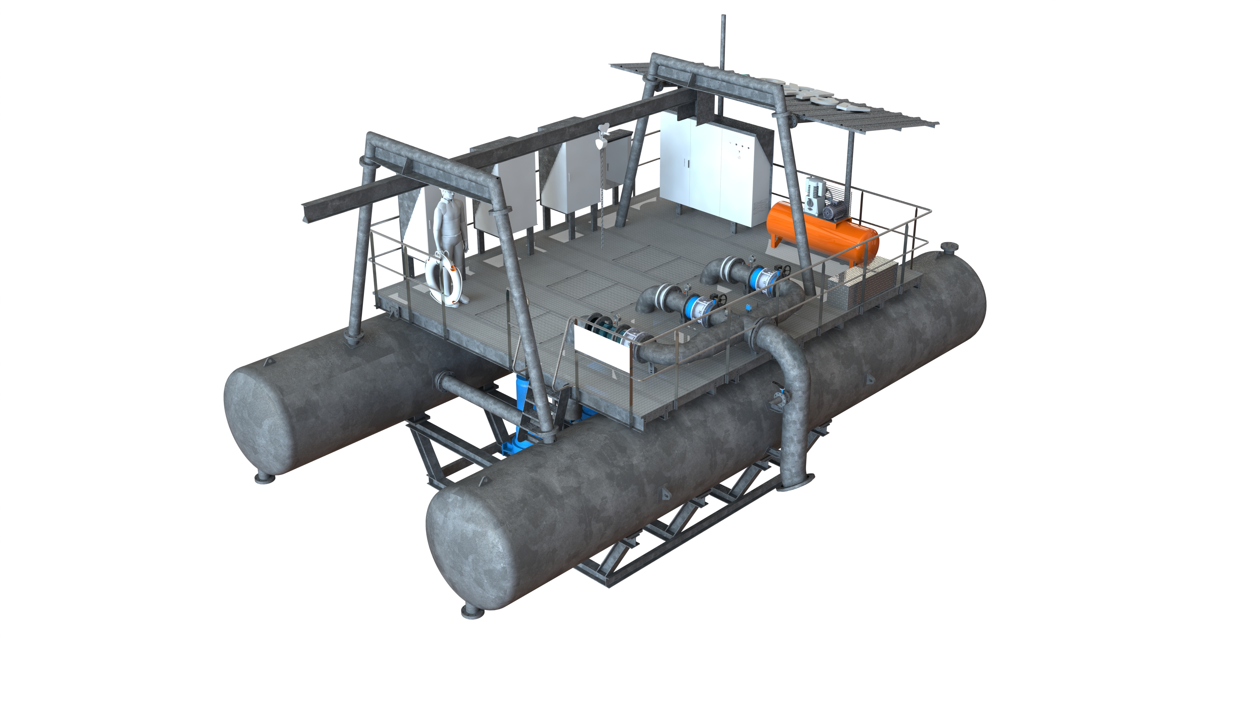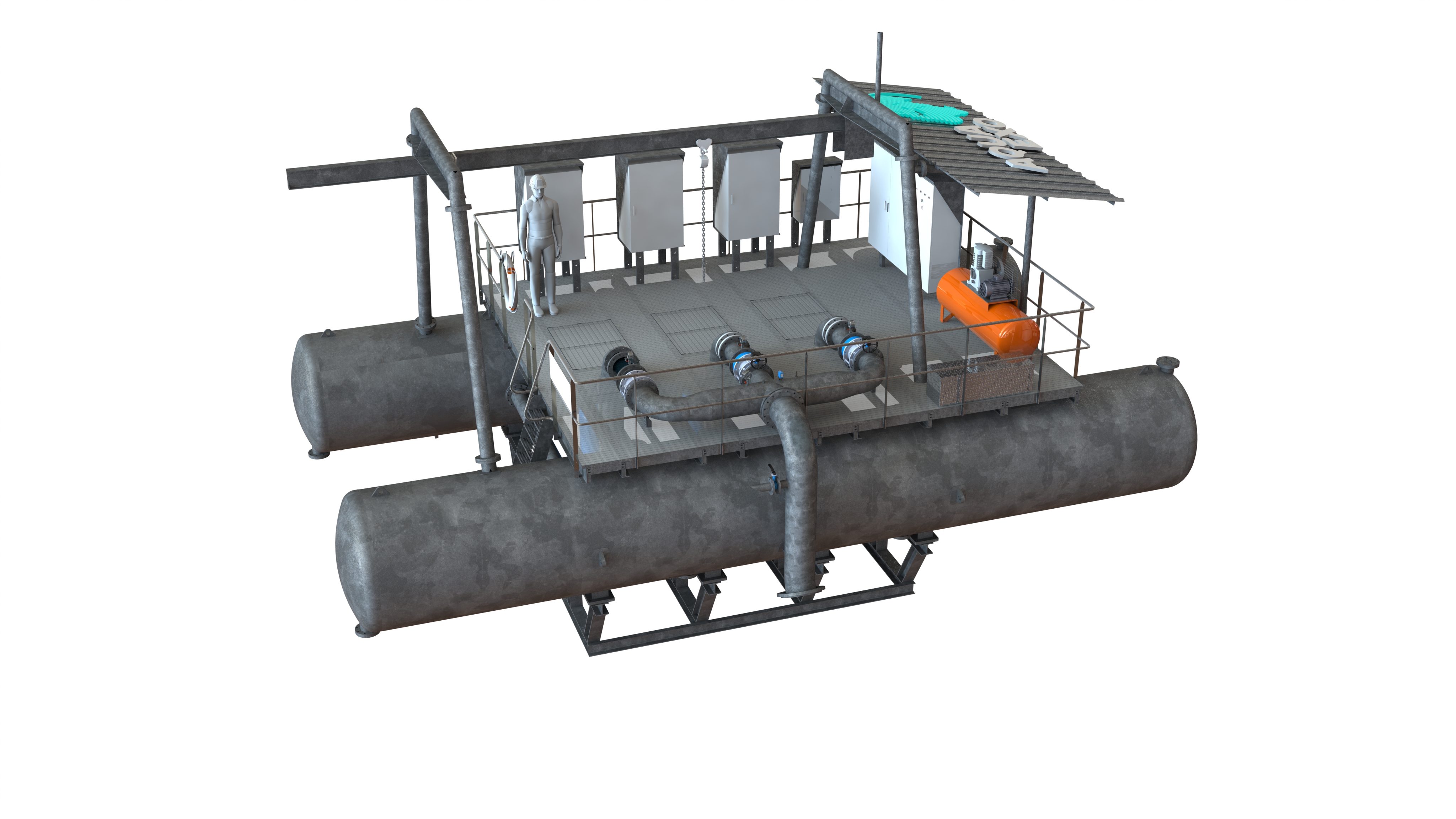 > Les Barges de Pompage sont des unités autonomes conçues pour le captage d'eau de surface dans les retenues de barrage, notamment lorsque le niveau peut subir de fortes variations.