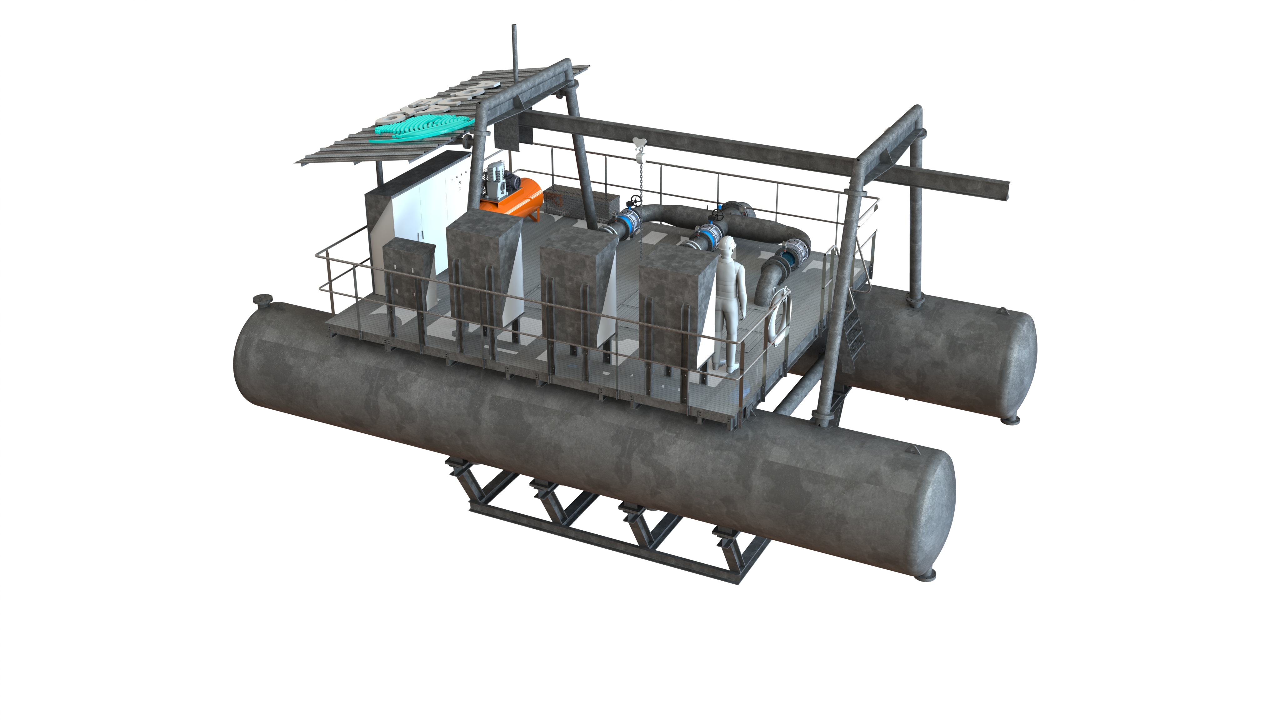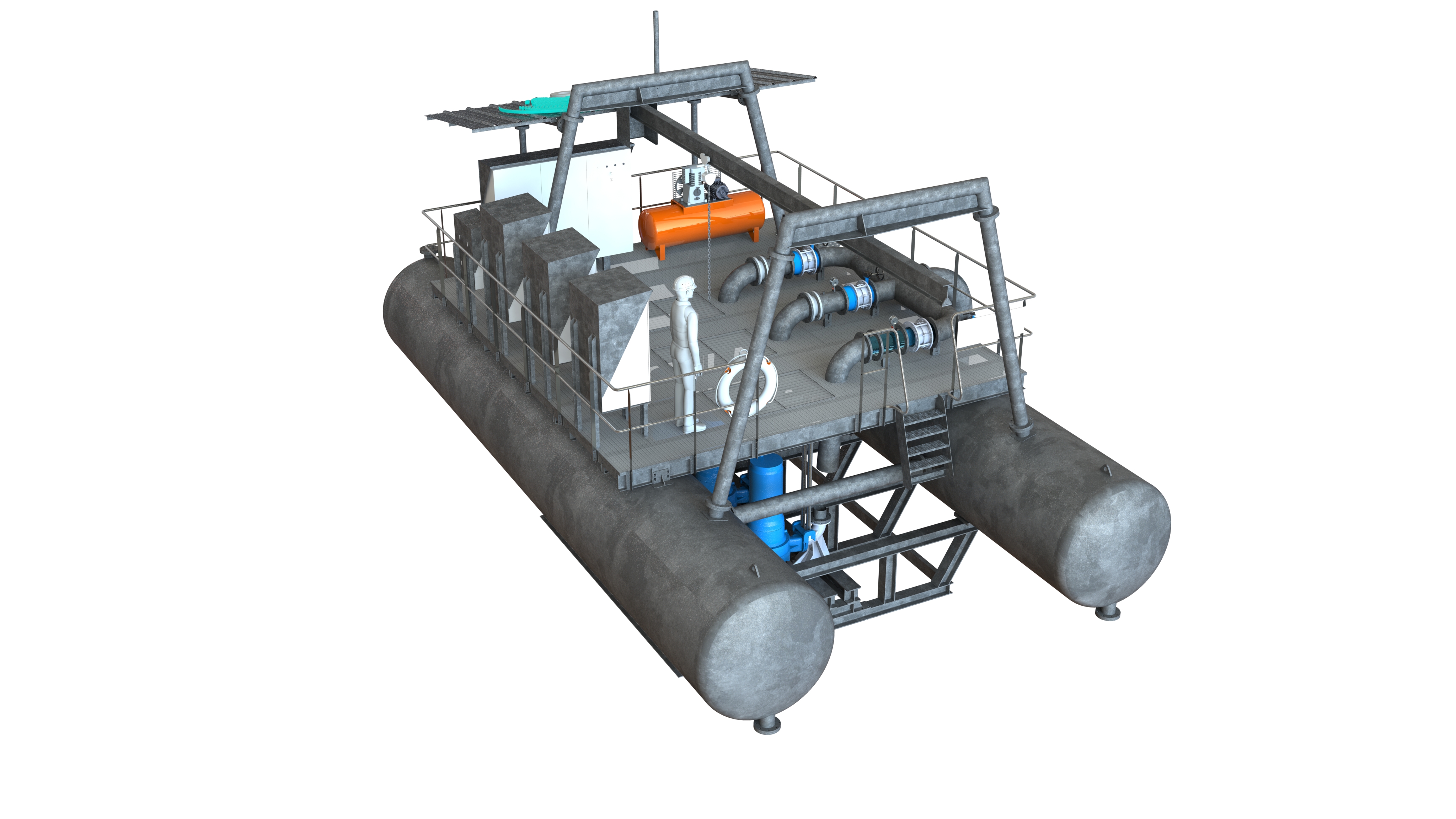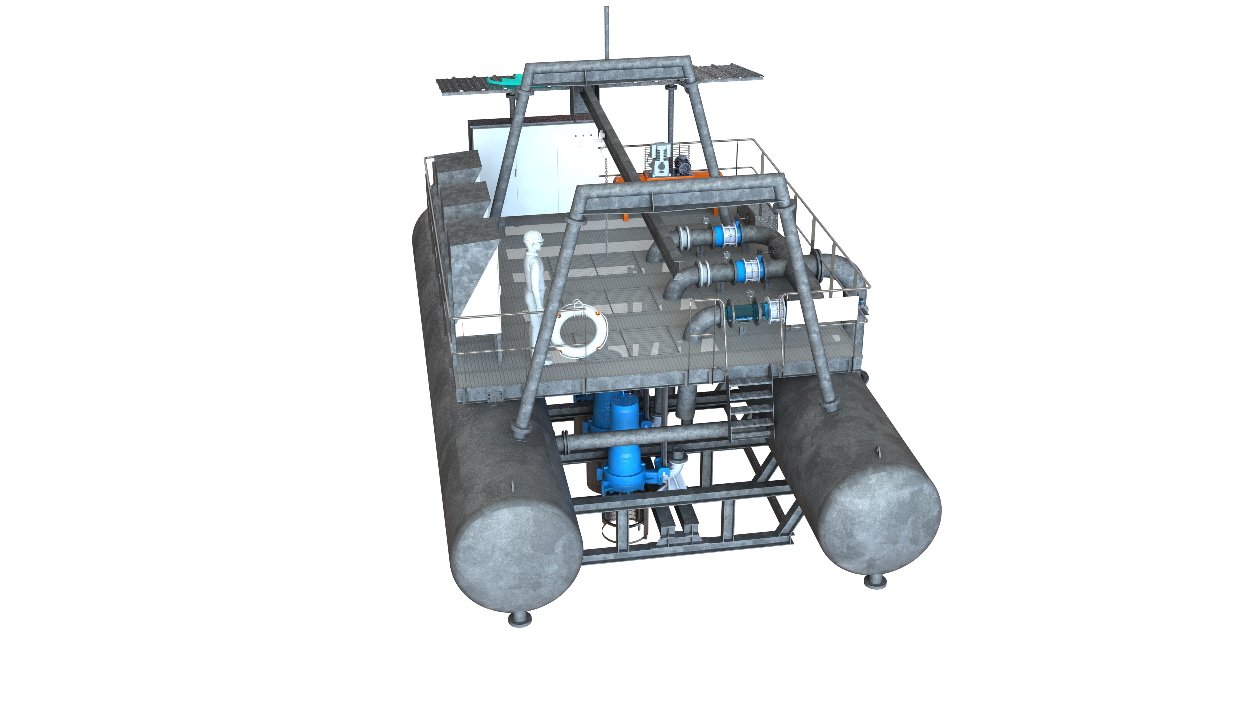 > Les Barges de Pompage sont des unités autonomes conçues pour le captage d'eau de surface dans les retenues de barrage, notamment lorsque le niveau peut subir de fortes variations.