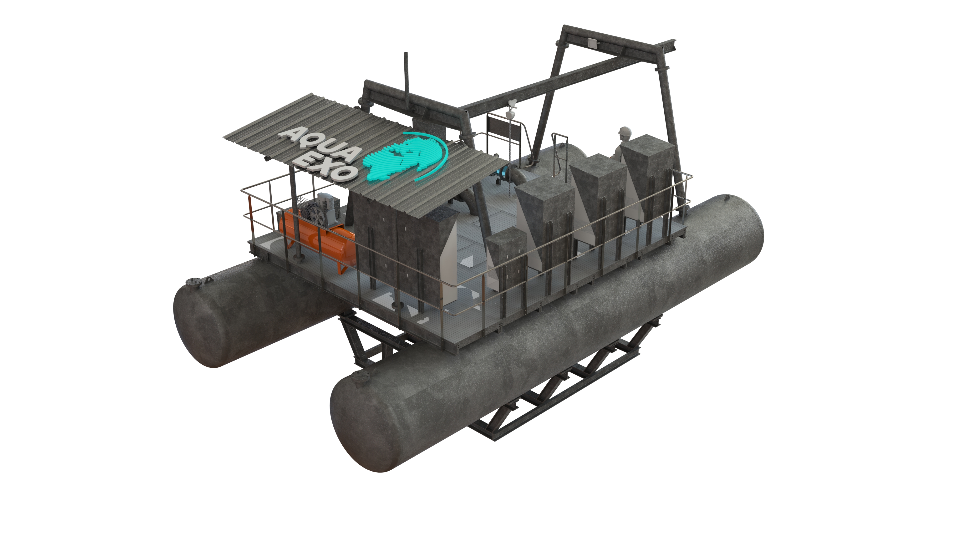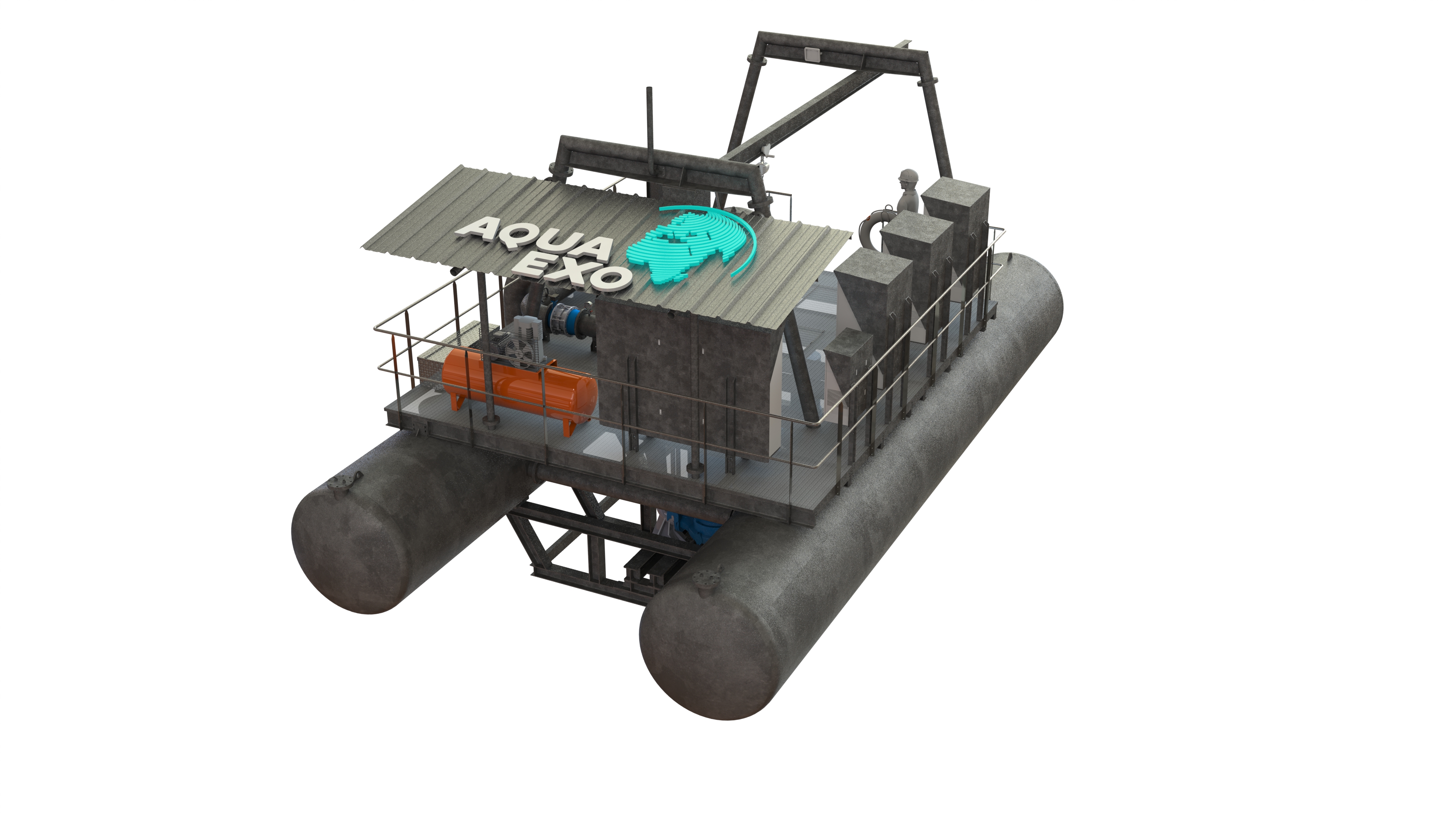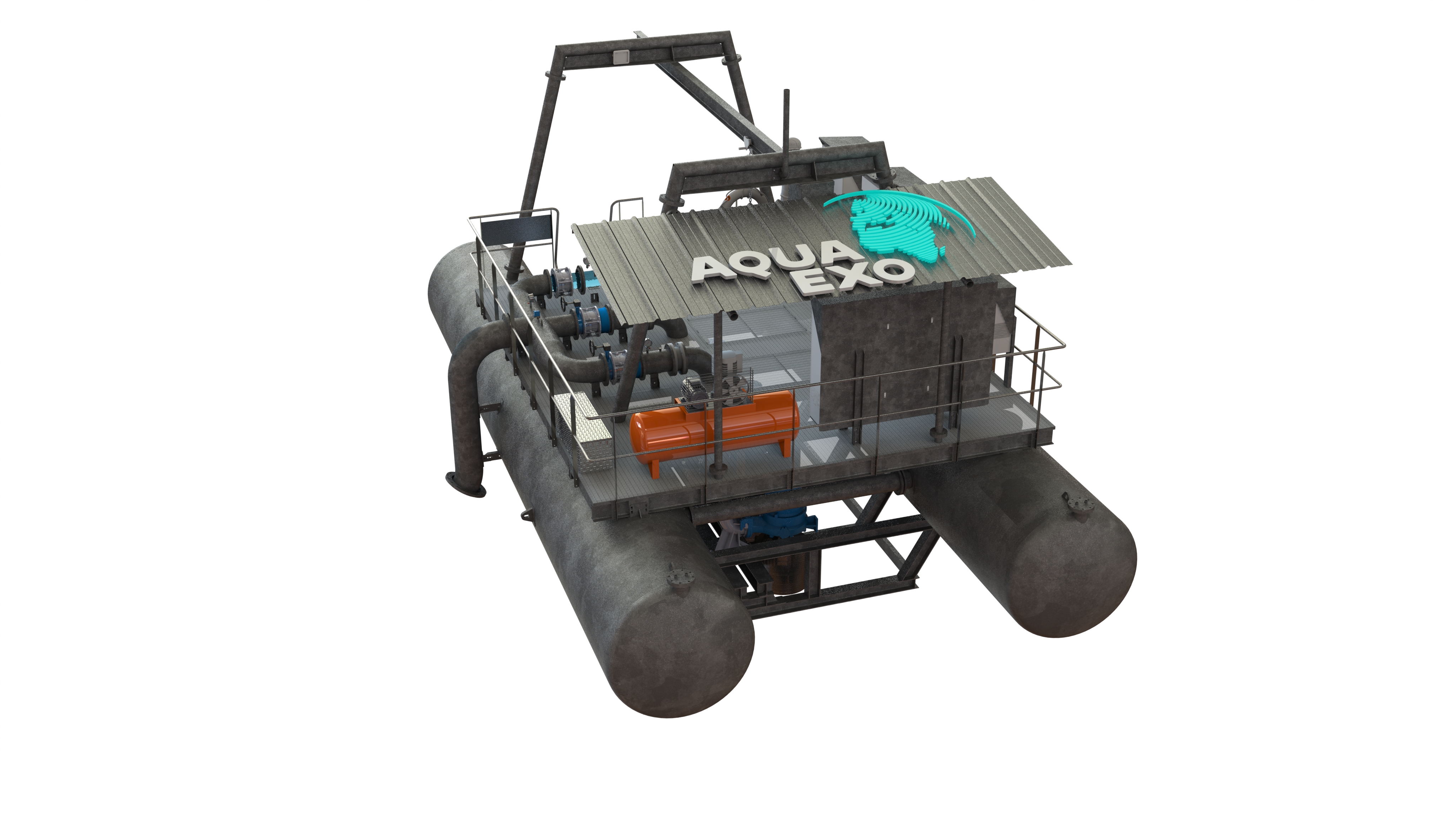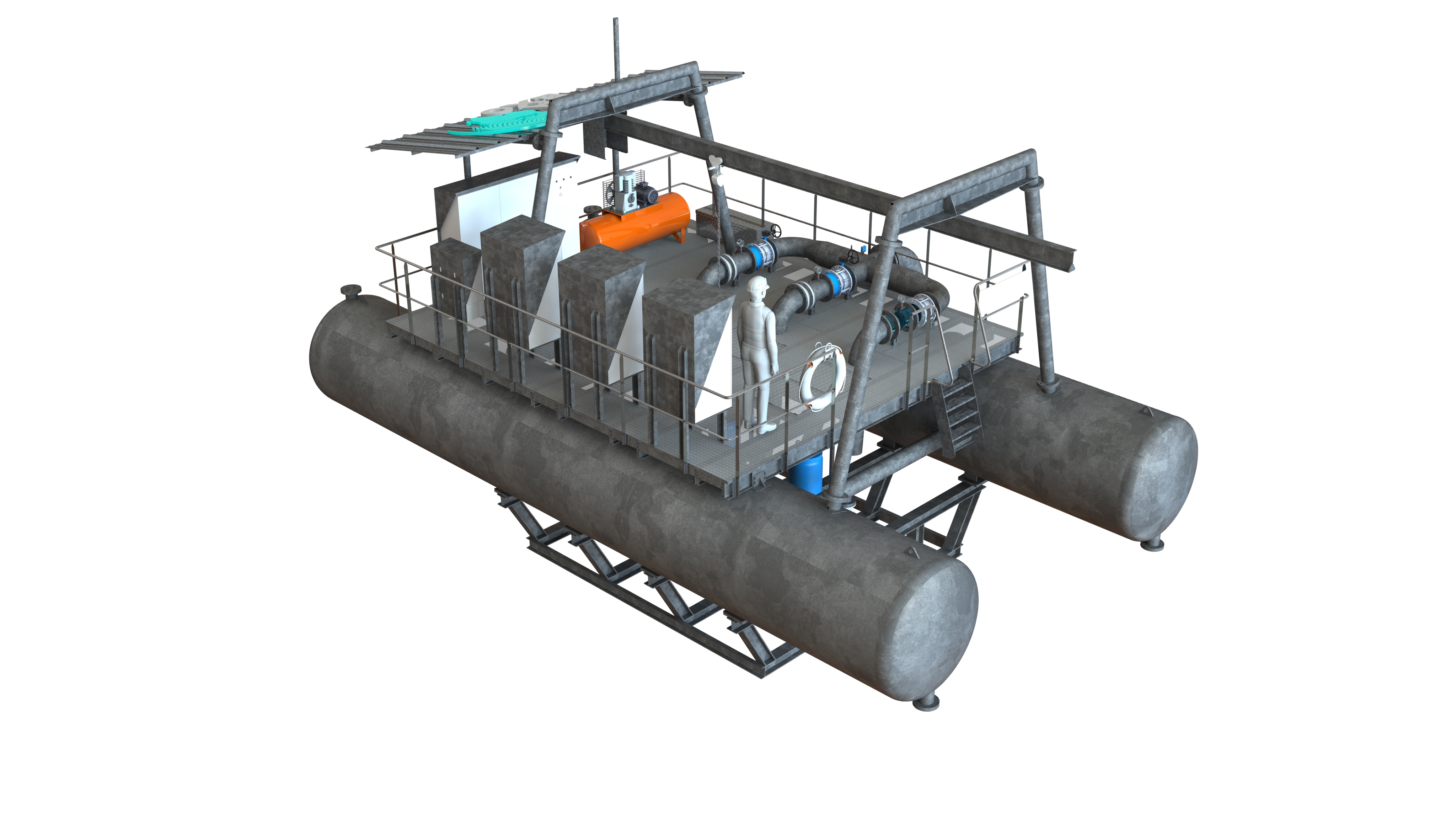 > La structure flottante supporte l'ensemble de la plateforme technique, incluant les conduites, la robinetterie, les équipements hydrauliques et l'armoire électrique.