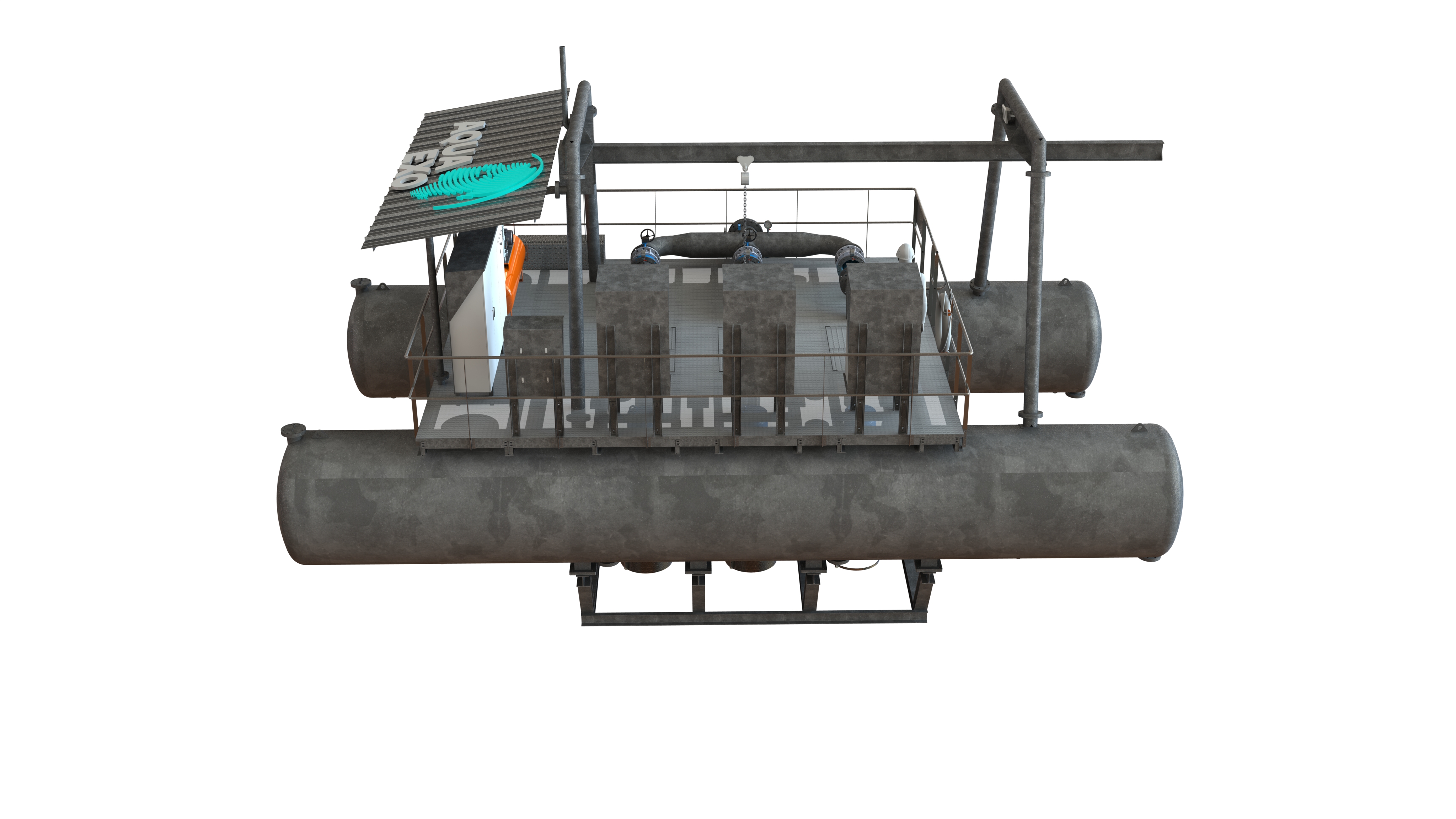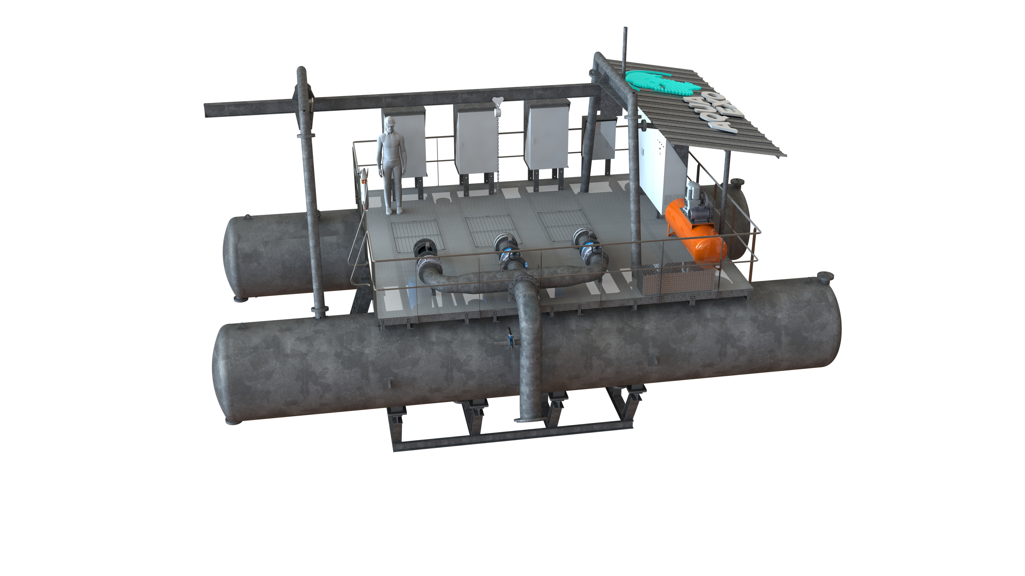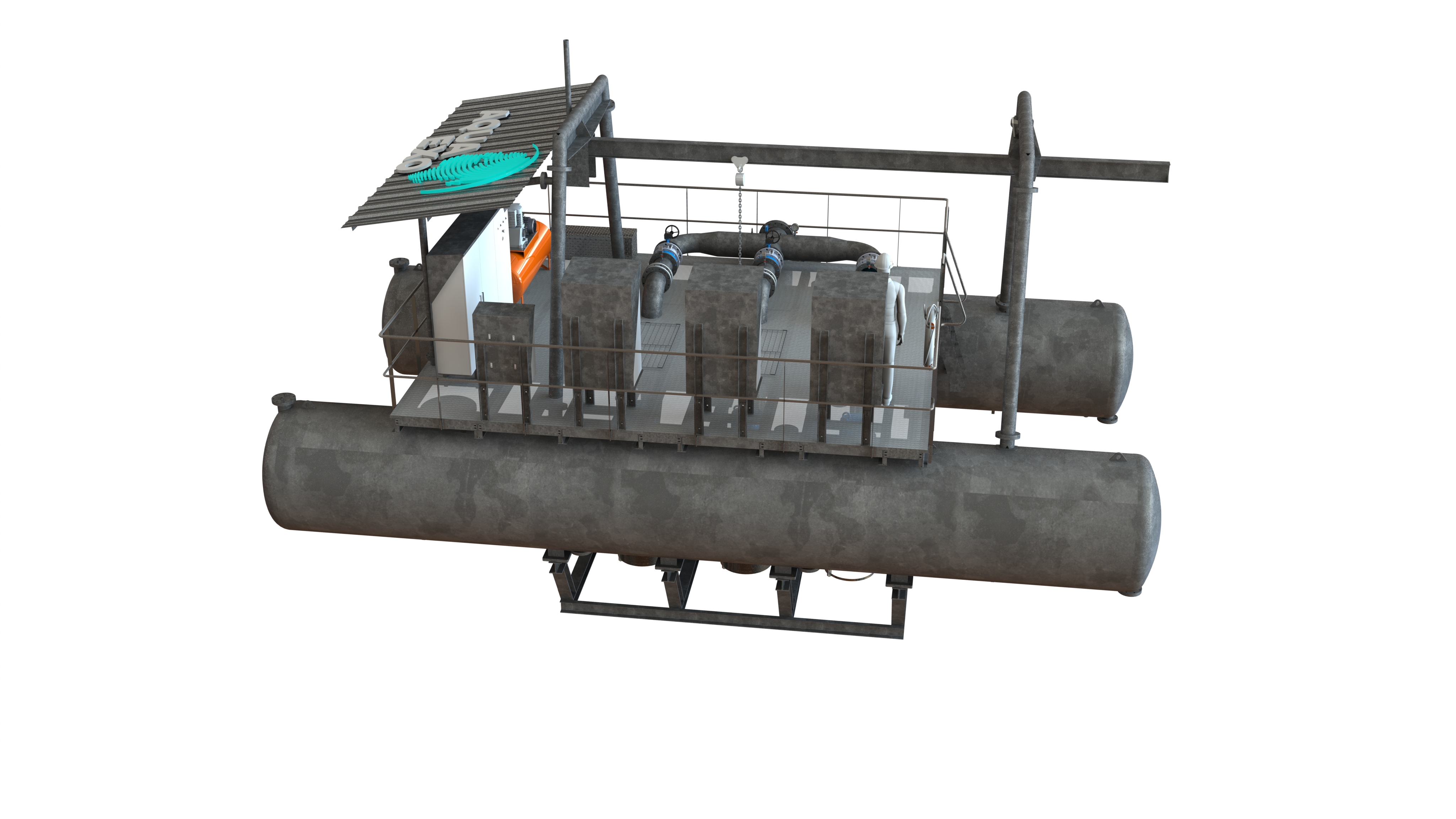 > Cette solution embarque tous les équipements nécessaires à la manutention des groupes de pompage ainsi qu'au décolmatage du système de filtration.