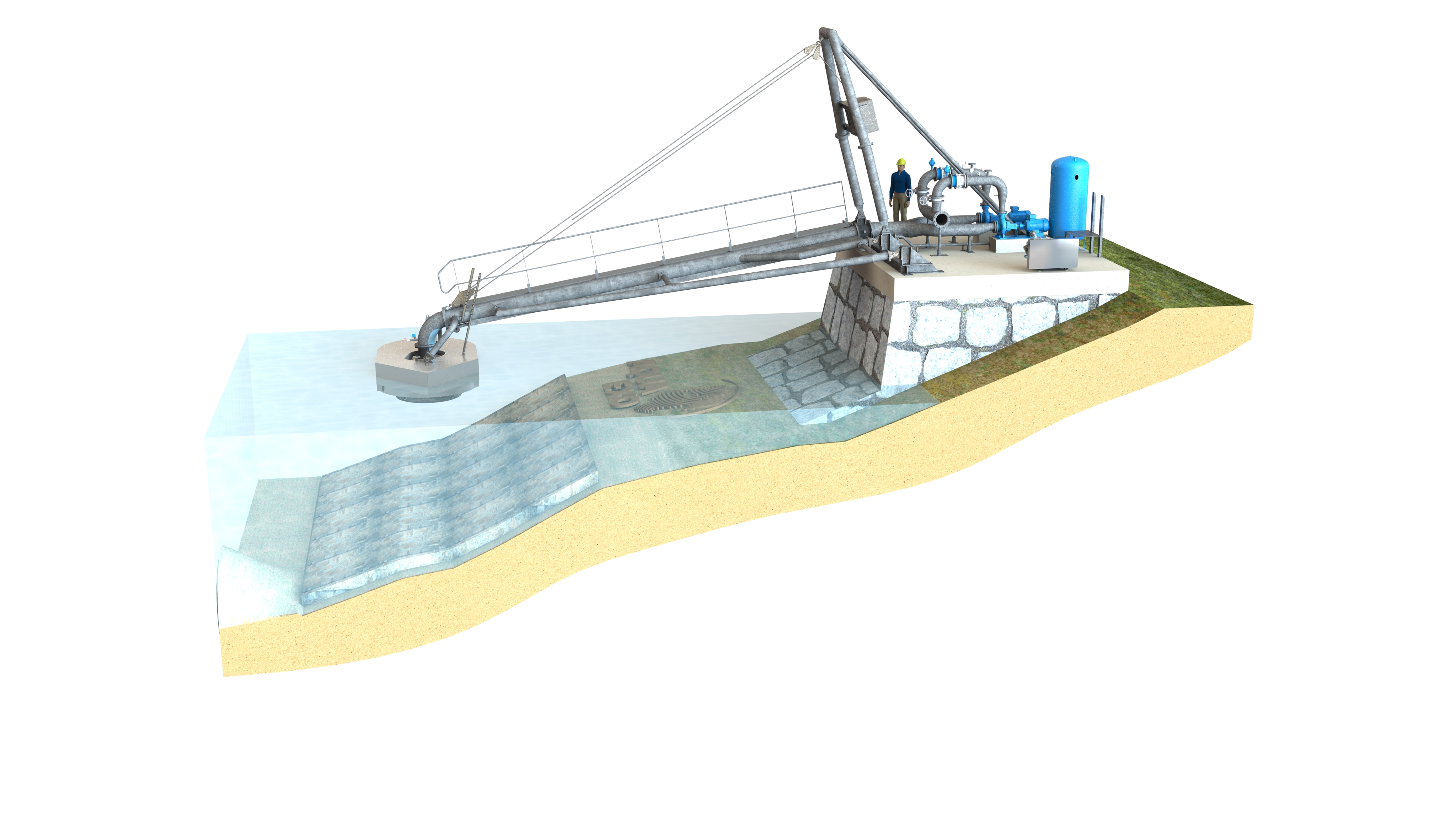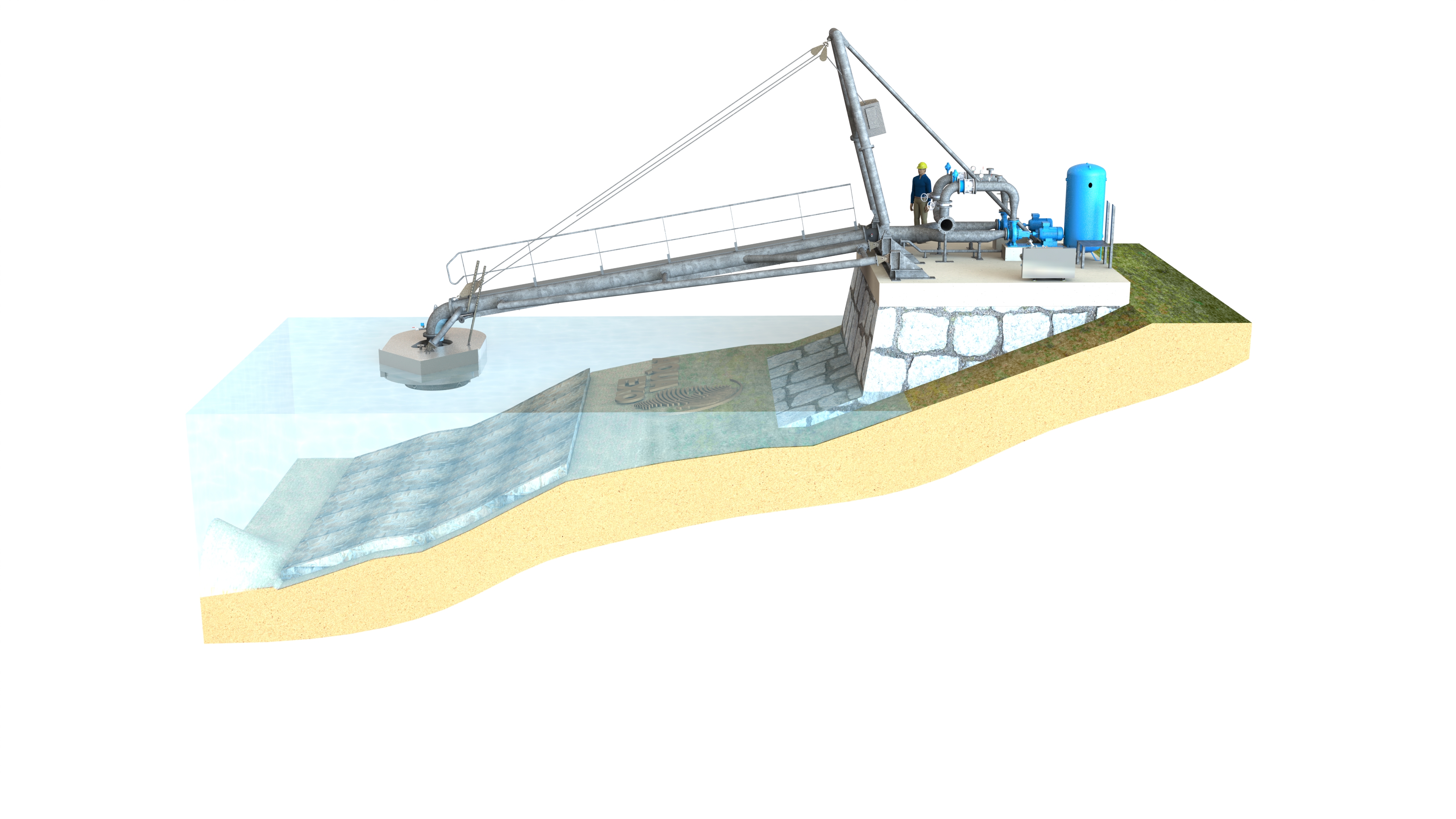 > Cette solution est conçue pour capter une tranche d'eau spécifique en surface, dans des plans ou cours d'eau sujets à des variations de niveau.