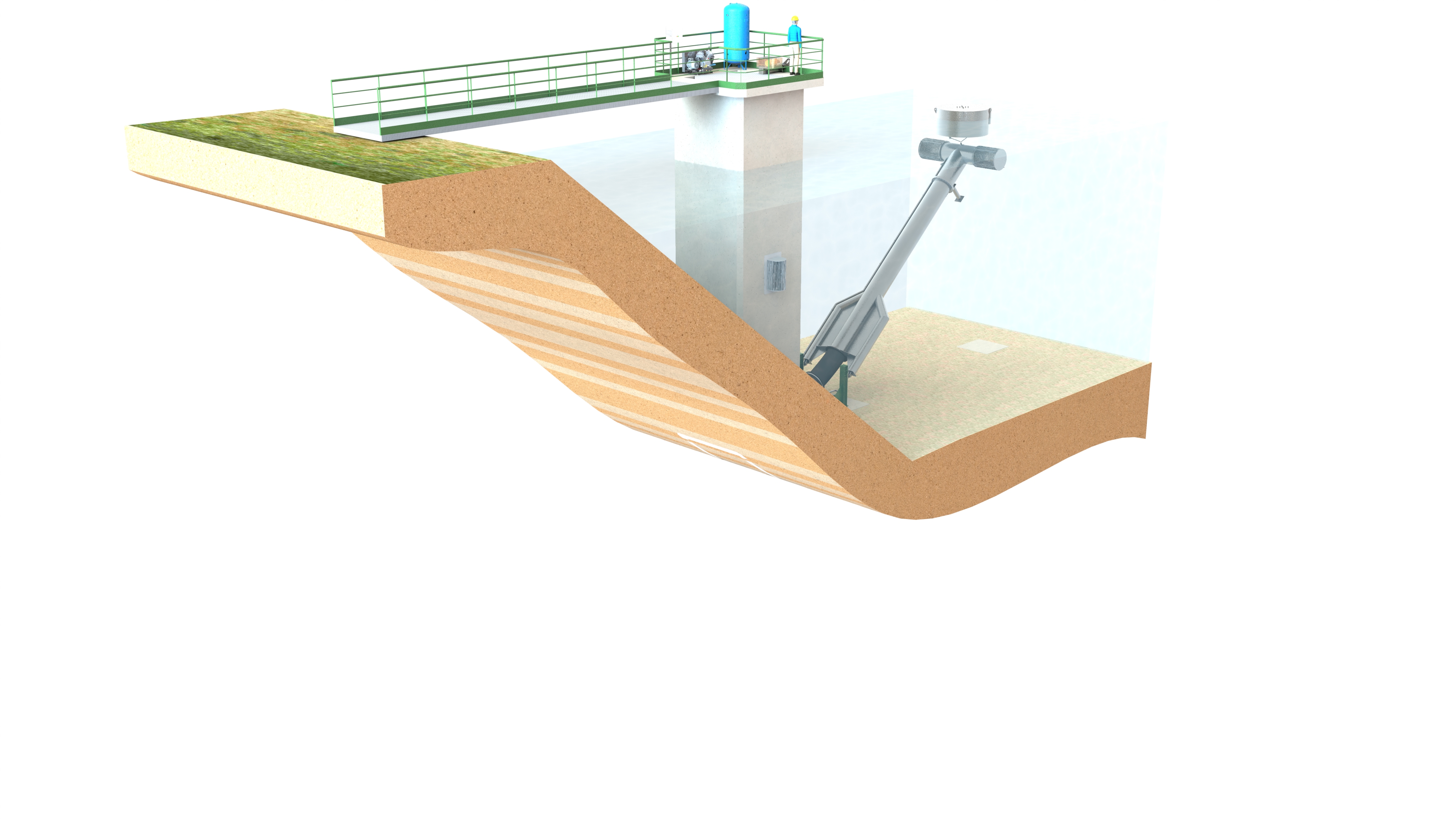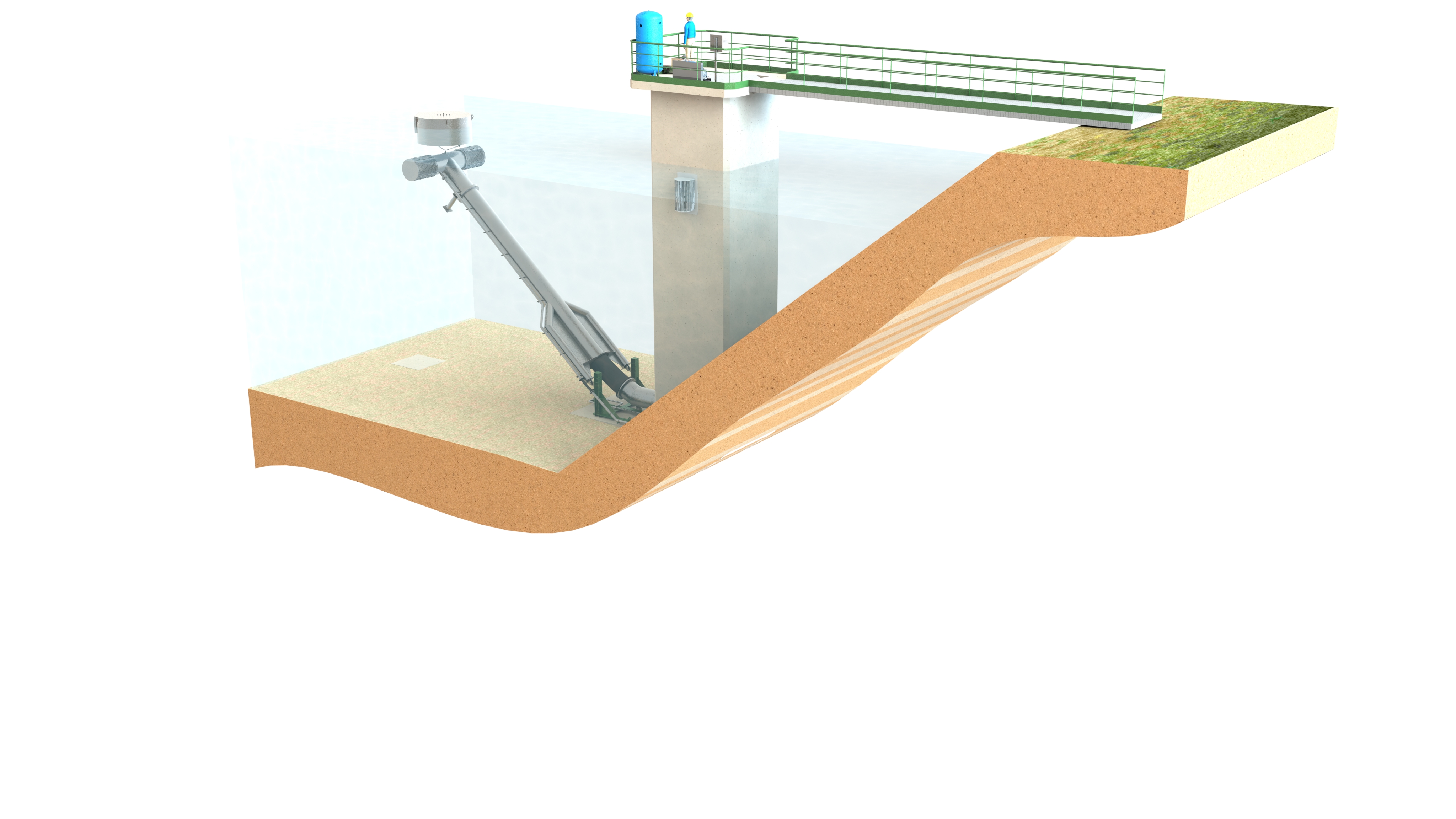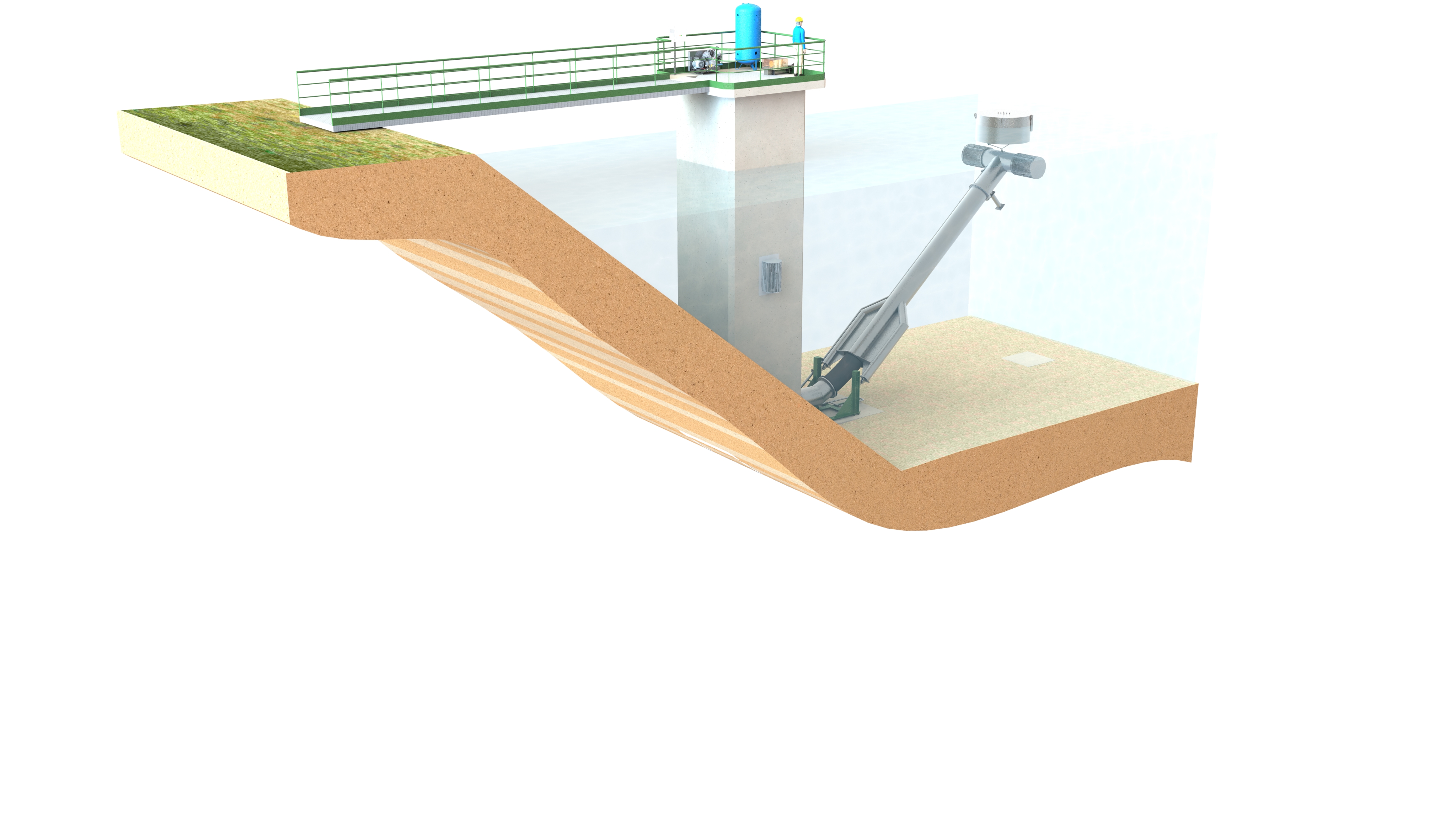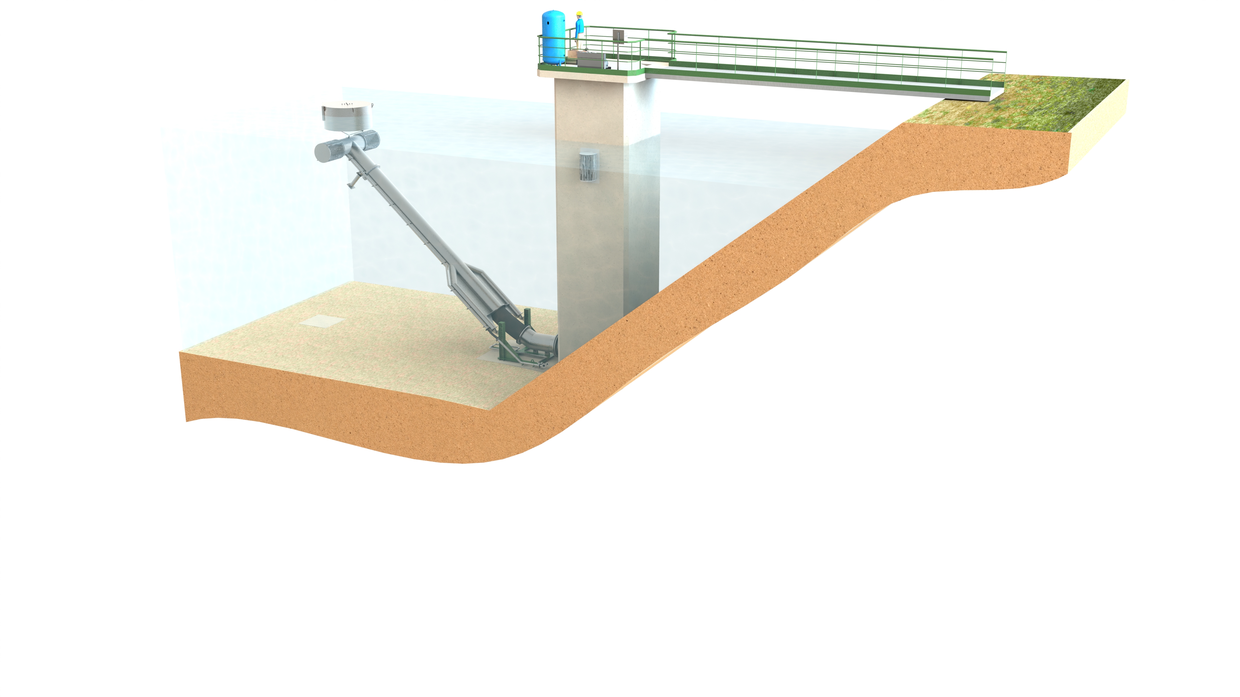 > Les Bras Mobiles Immergés sont des unités conçues pour le captage d'eau dans les retenues de barrages.