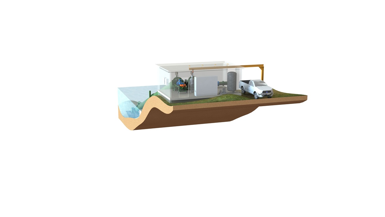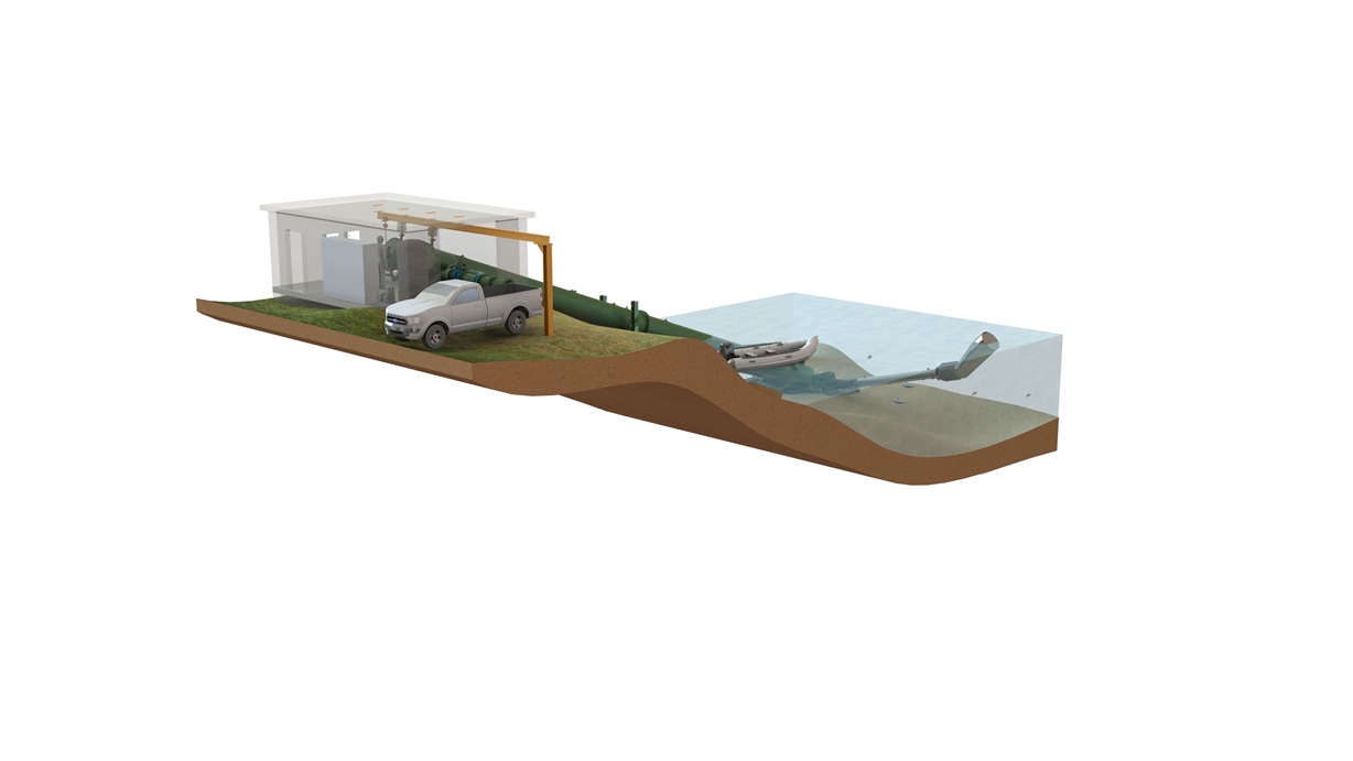 > Les pompes, montées sur chariots, peuvent être facilement extraites depuis la berge, ce qui simplifie grandement les opérations de maintenance.