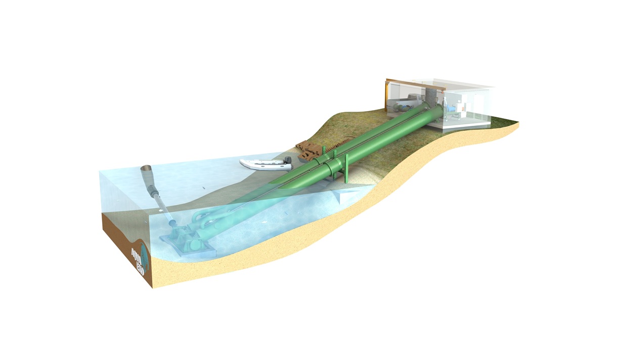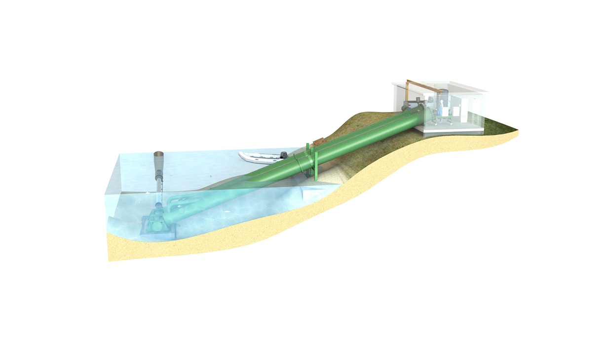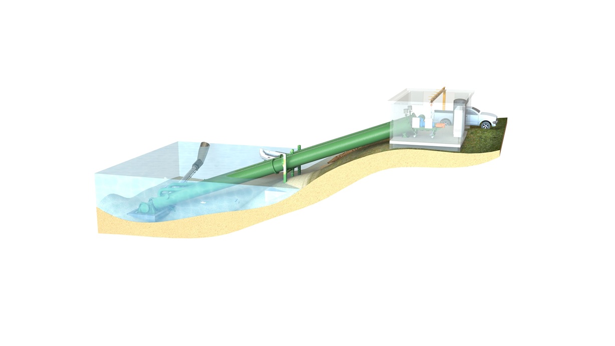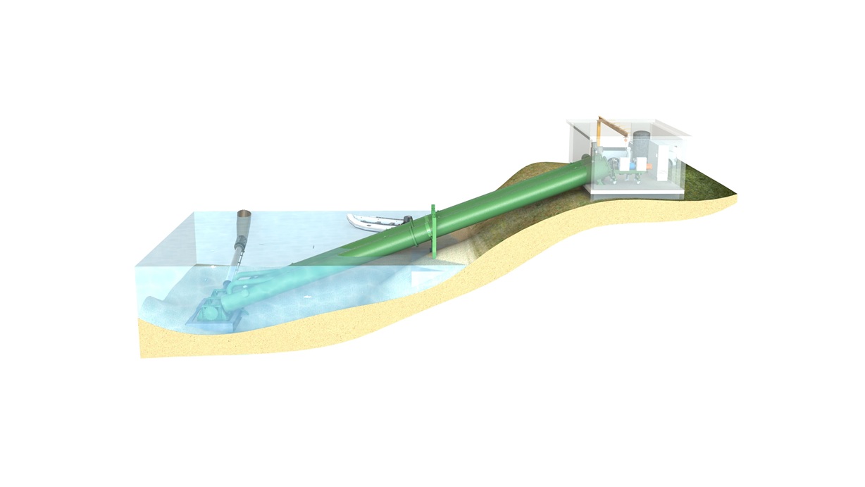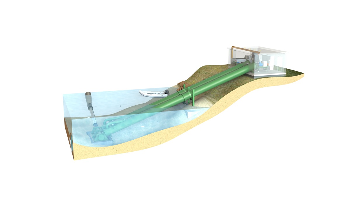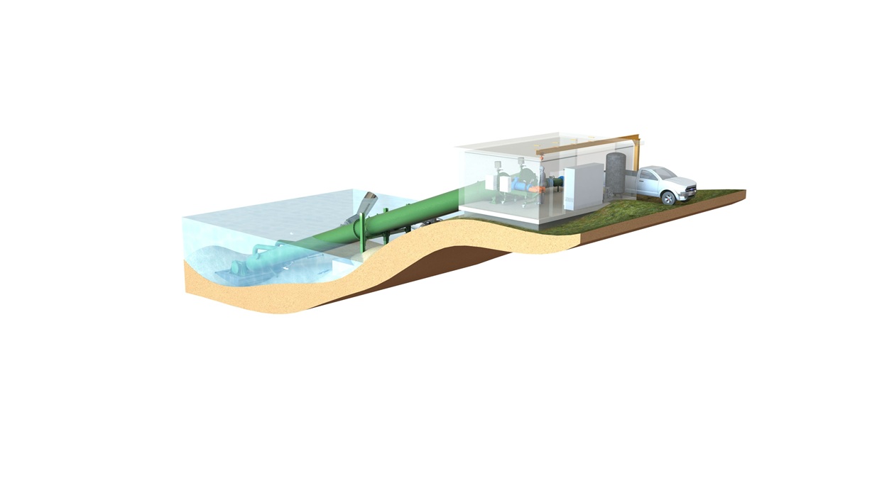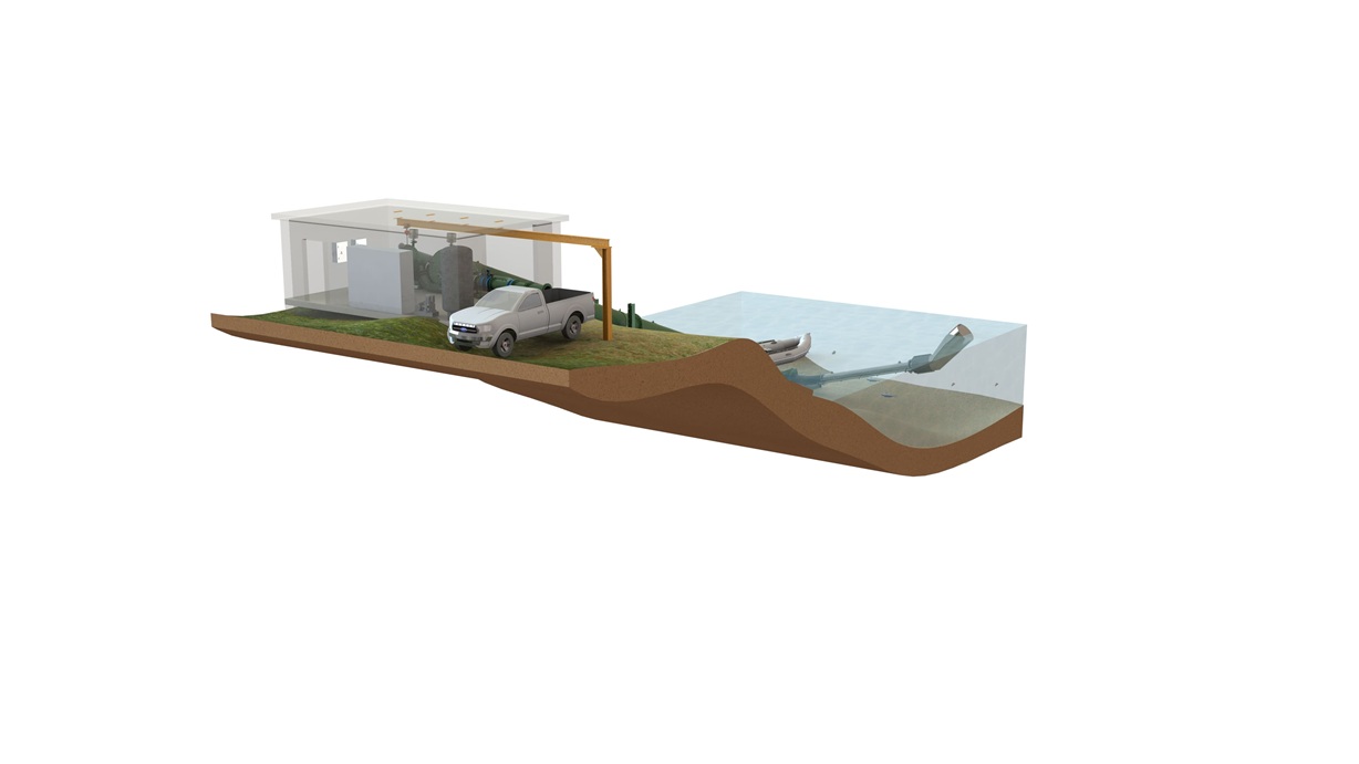 > Cette solution, constituée de structures tubulaires, permet d'installer les groupes électropompes en dessous du niveau des plus basses eaux.